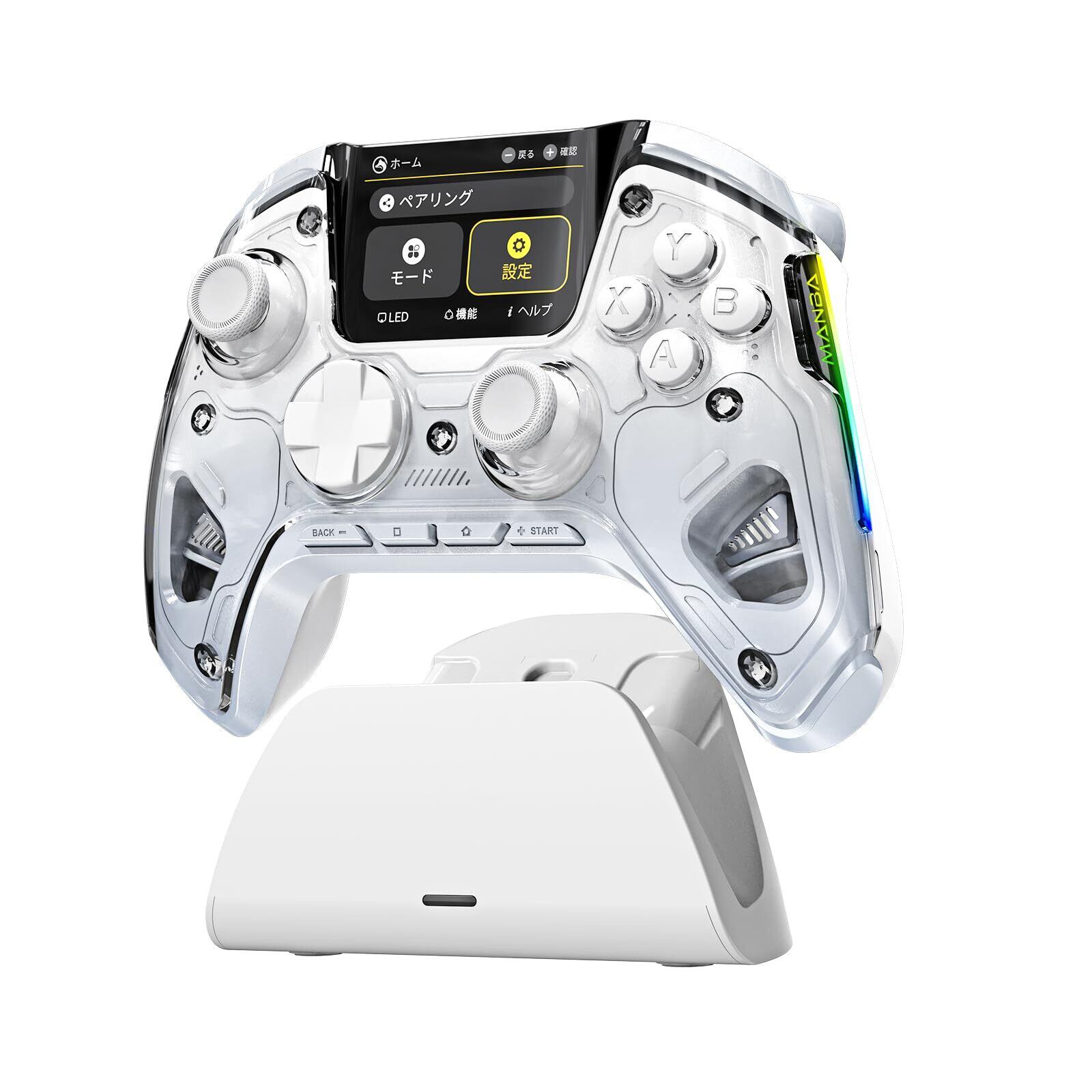 ManbaOne PC コントローラー 多機能LCDディスプレイ付き Switch2 コントローラー ドリフト防止ホールスティック ホールトリガー 連射機能プロコン PC/Switch2/Android/iOS対応 4つ背面ボタン ゲームパッド 1800mAh大容量バッテリー 有線/無線接続可能