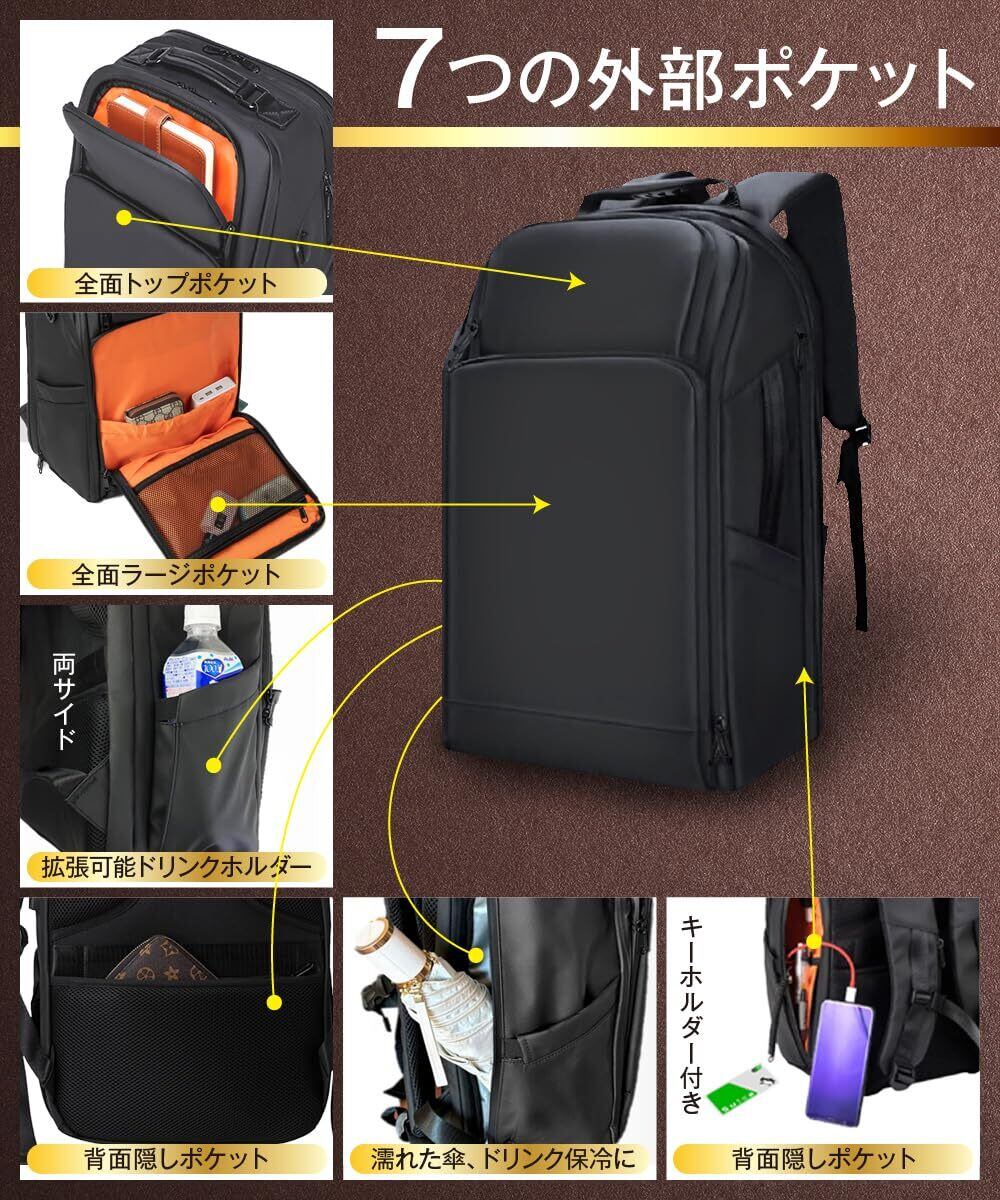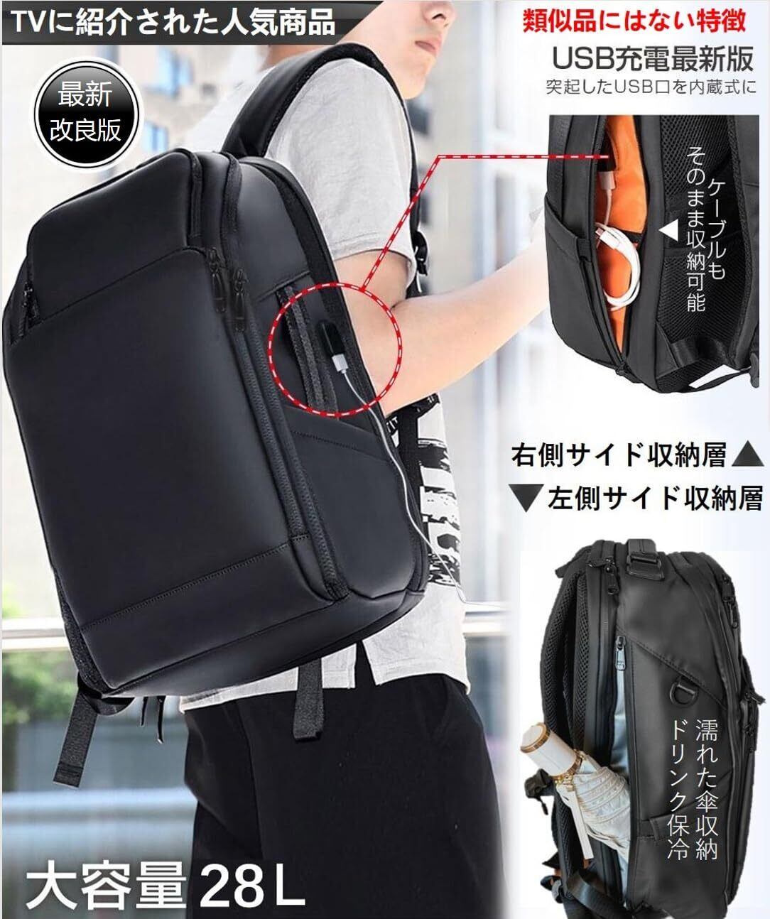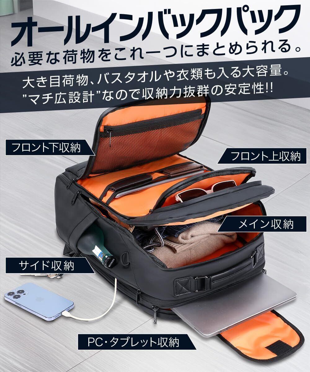 [ABIBA] 2024年ファスナー徹底改良 リュック メンズ ビジネスリュック リュックサック スクエアリュック 大容量 PCリュック 通学 通勤 出張 USB充電ポート 黒 型崩れ防止