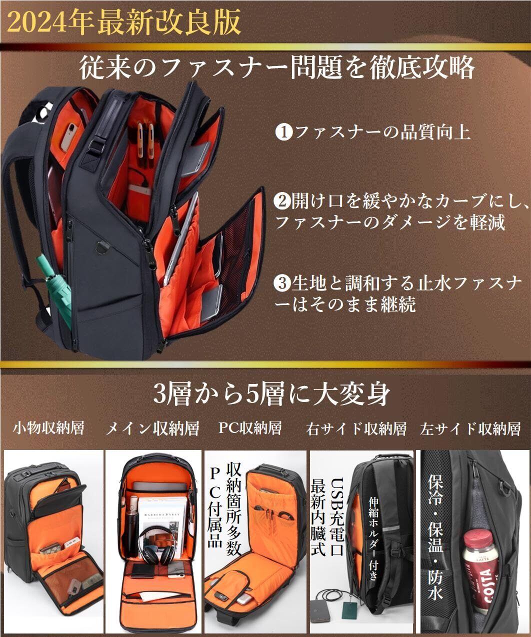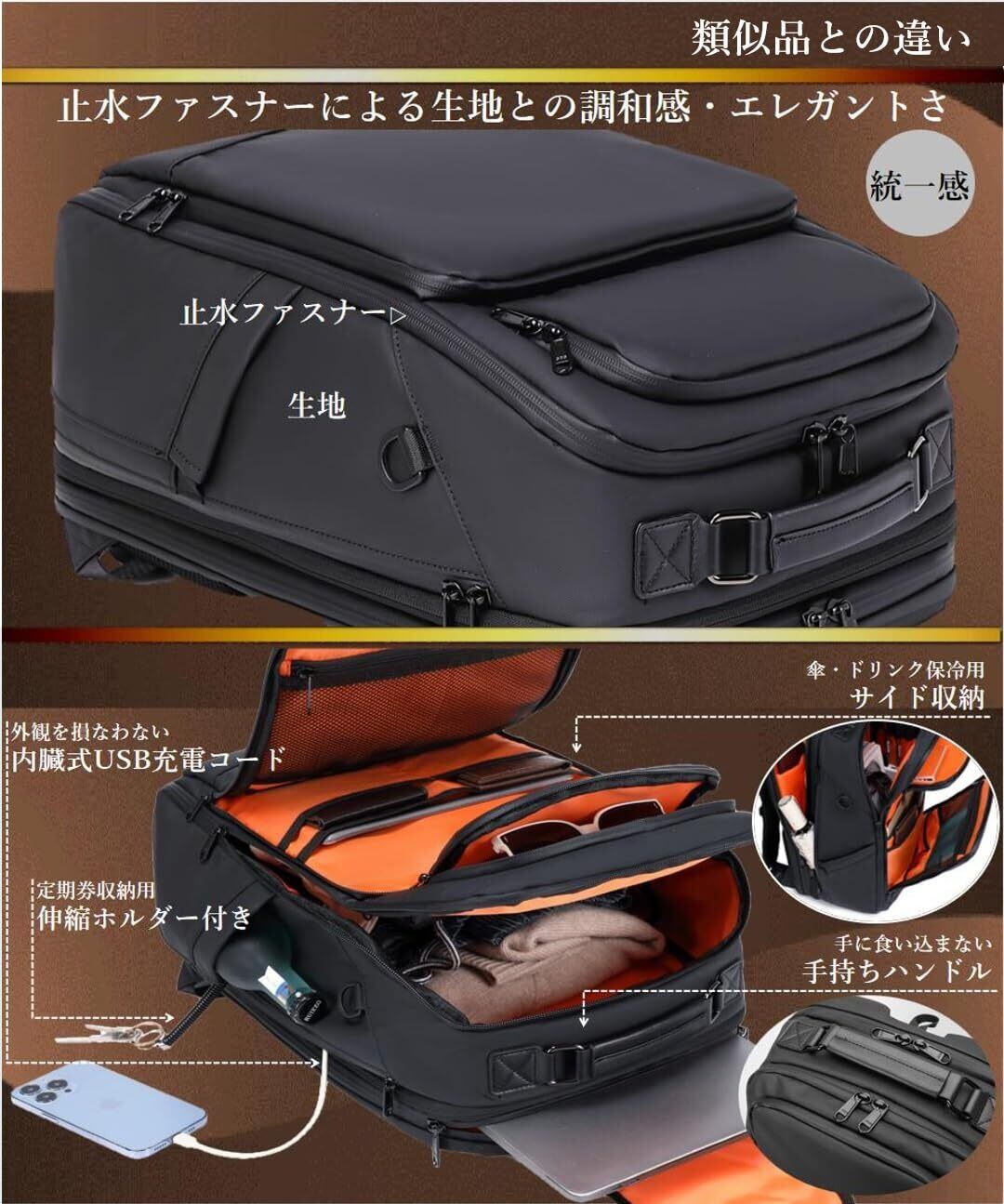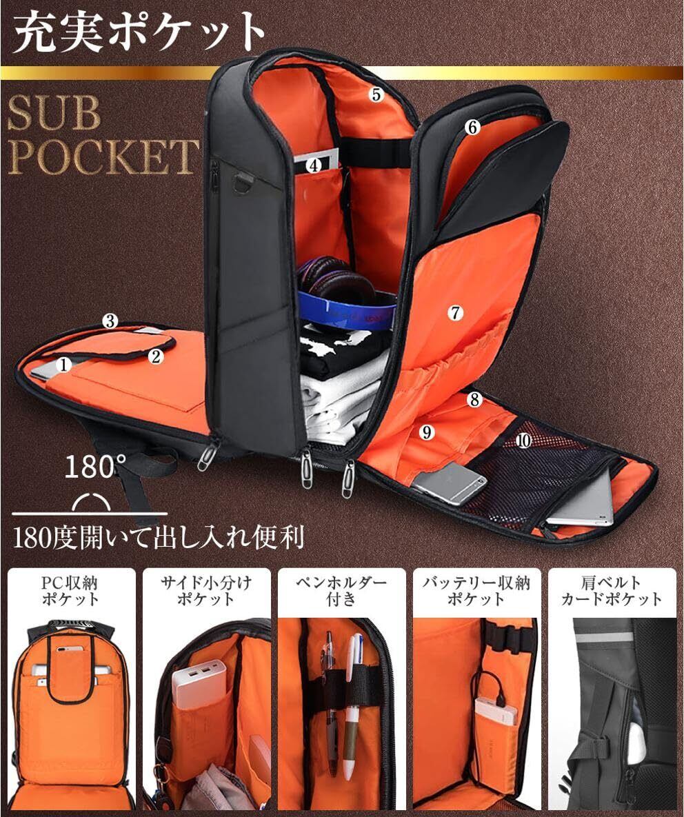 [ABIBA] 2024年ファスナー徹底改良 リュック メンズ ビジネスリュック リュックサック スクエアリュック 大容量 PCリュック 通学 通勤 出張 USB充電ポート 黒 型崩れ防止
