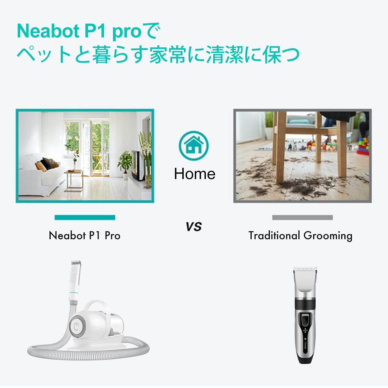 【ブラシと掃除機一体型】Neabot ペット用バリカン 犬 猫美容器 5 in 1 多機能ペット掃除機 ペットグルーミングセット 電動バリカン ヘアクリッパーやヘアブラシも含む ペット用品 ペットの抜け毛対策 P1 PRO