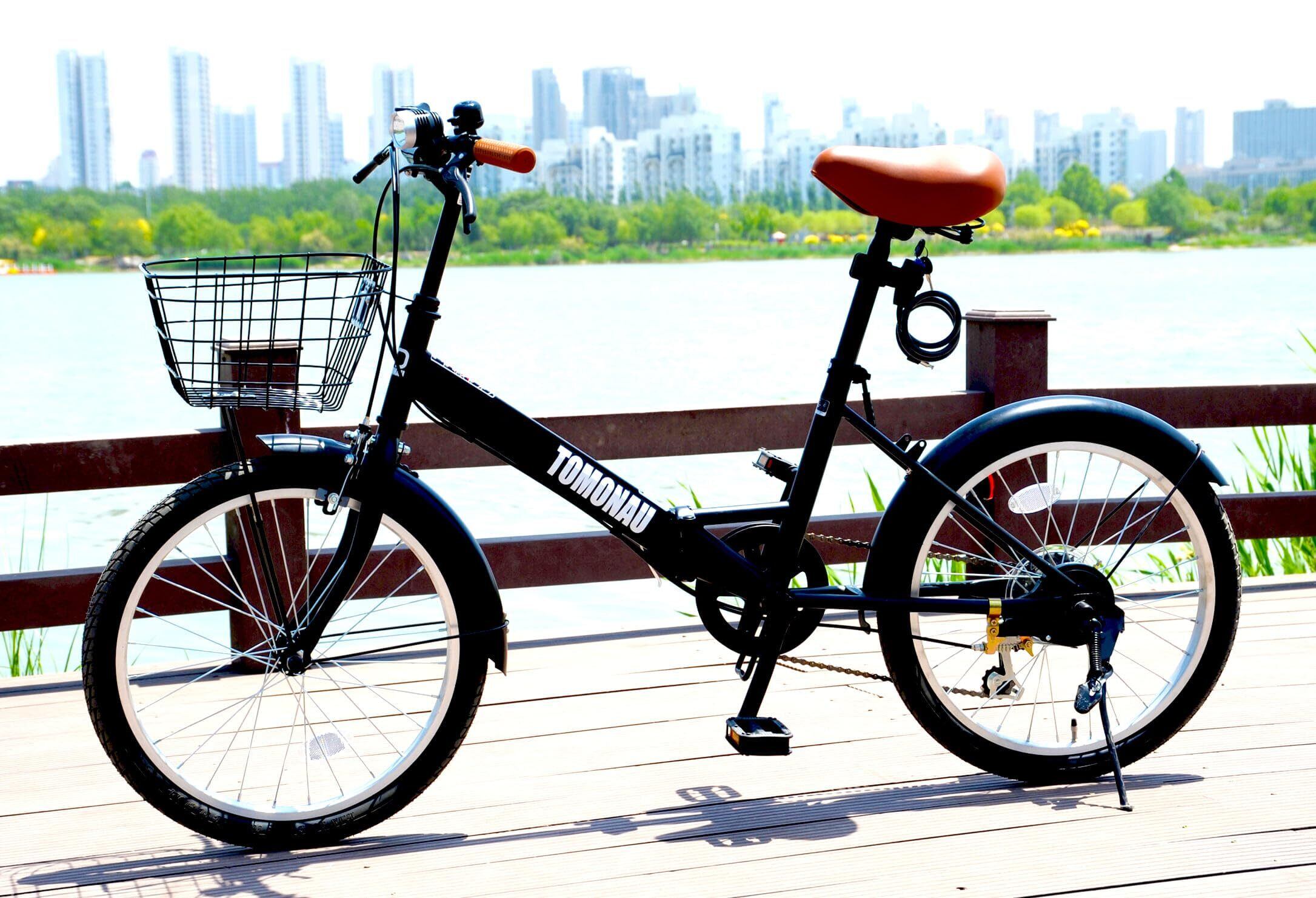 TOMONAU 折り畳み自転車 折りたたみ自転車 20インチ シマノ6段変速 カゴ ワイヤー錠 ライト付き 通勤 通学 街乗 前後泥除け装備 ハンドルの高さ調節できる 小径車 ミニベロ
