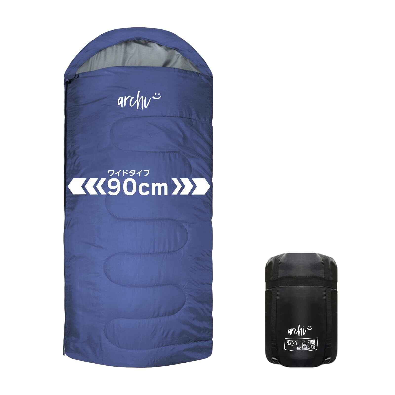 archi(アーチ) ワイドサイズ 寝袋 210T シュラフ 封筒型 抗菌仕様 車中泊 防災 最低使用温度 -15℃