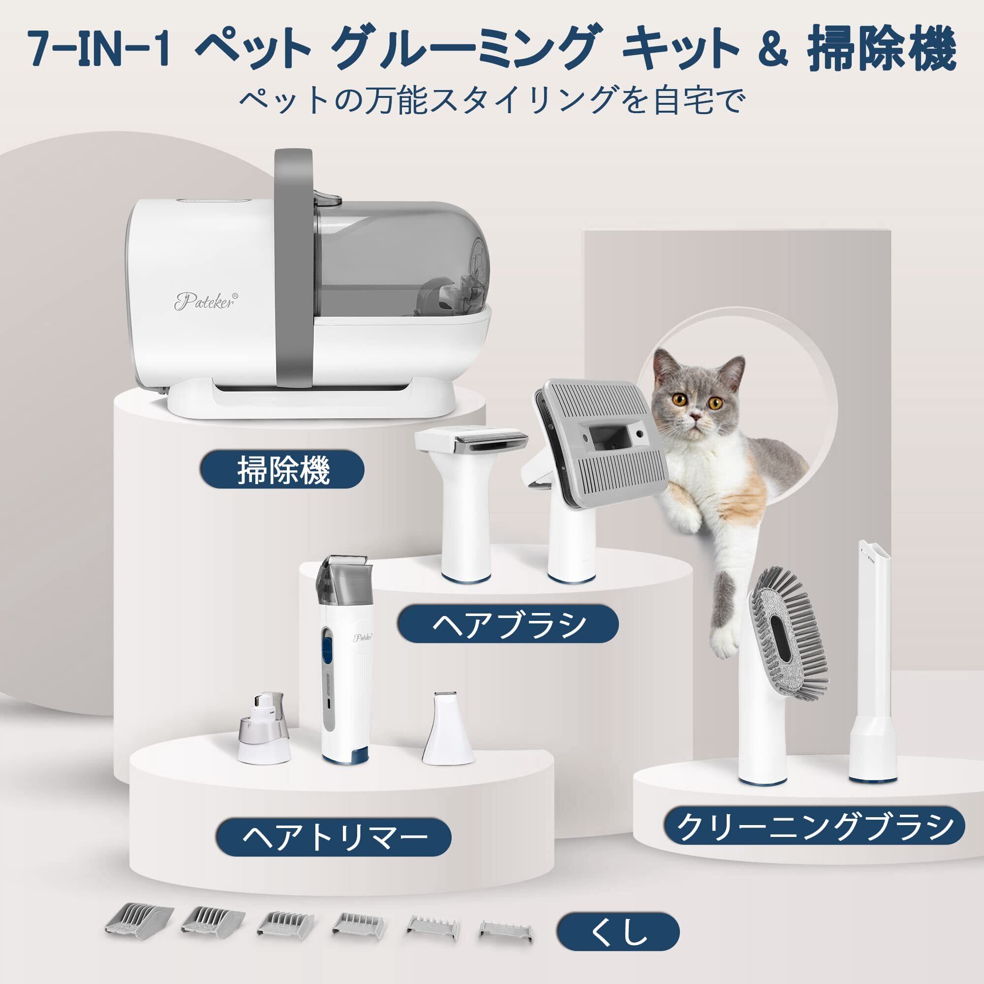 【正規品】【20年プロトリマー推奨】Pateker® 7 in 1 ペット用バリカンセット | ペット グルーミング 掃除機 | ブラシと掃除機一体型 | 犬 掃除機 | 自動吸引で抜け毛ケア | 低騒音&初心者向け | 犬猫対応美容器 | 換毛期対策 | 犬用バリカン | ペットグルーミング&抜け毛対策の究極セット| 美容と清潔さを一つに