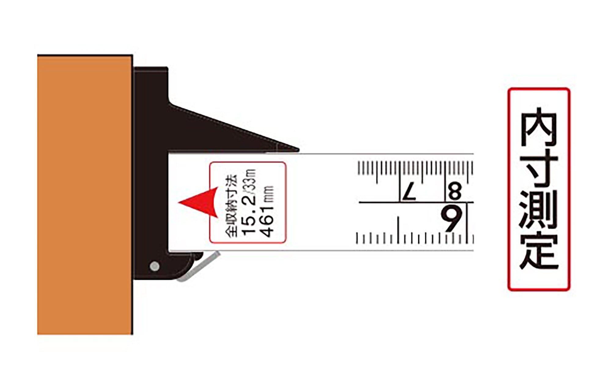 外側用フック。内寸だけでなく外側用フックを使い外寸測定ができます。