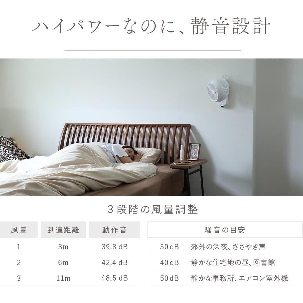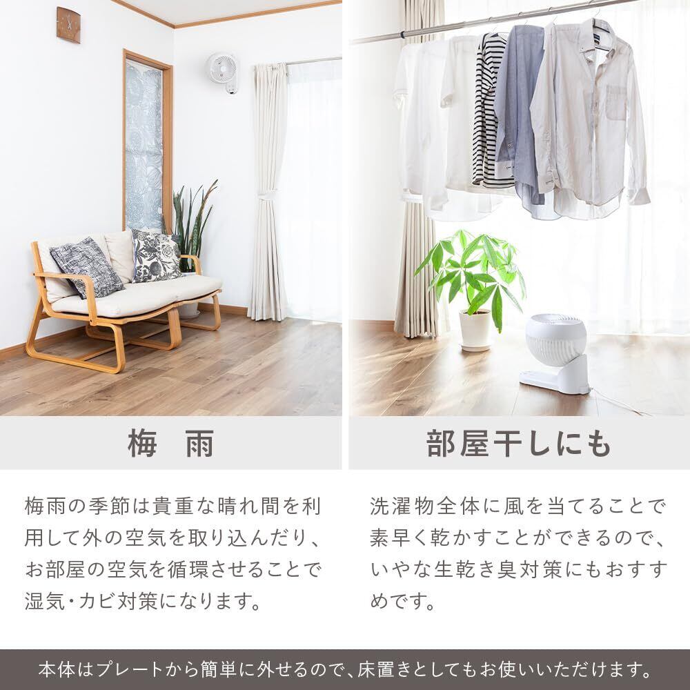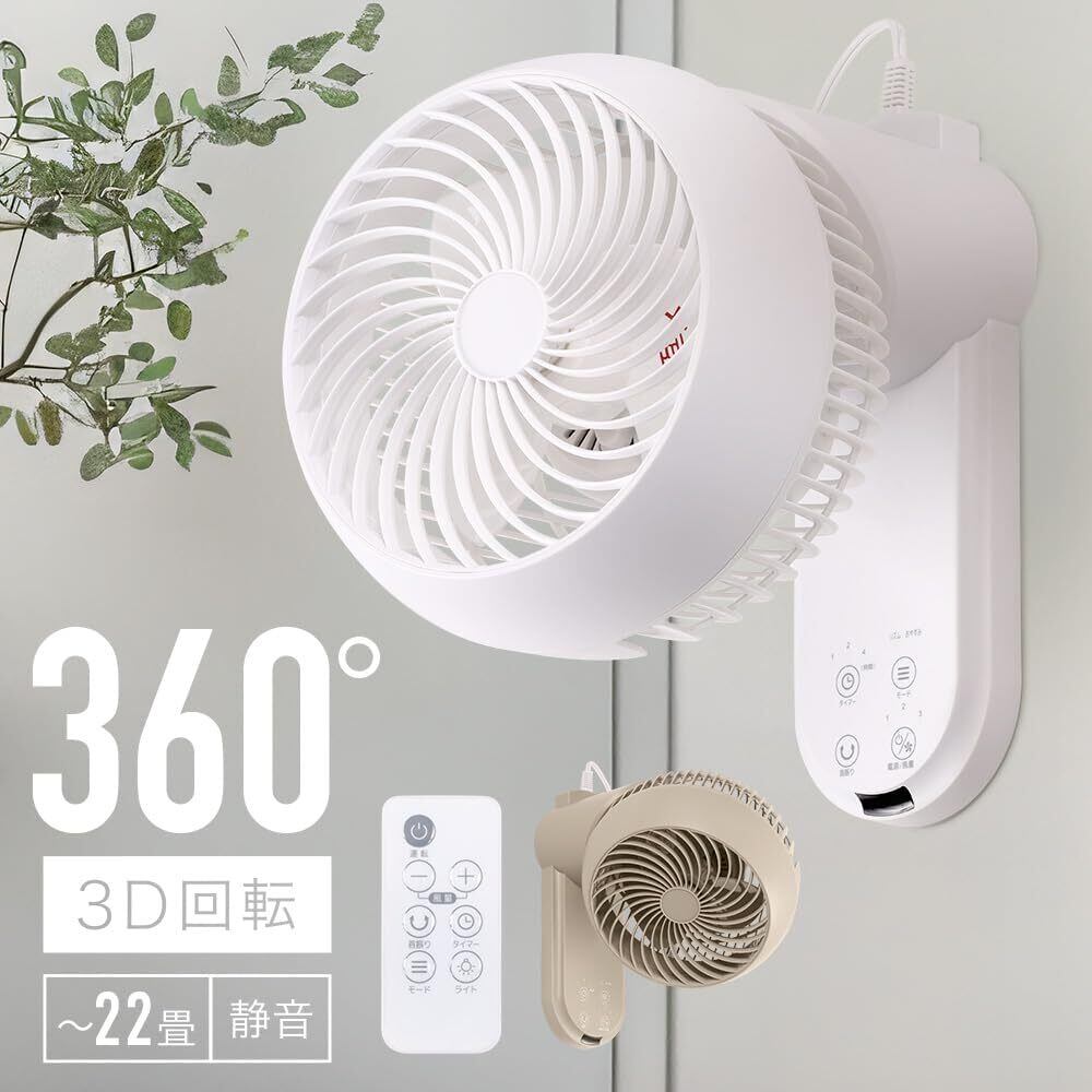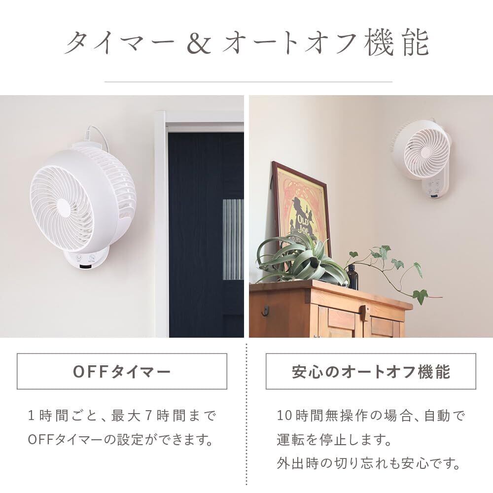 iimono117 節電対策 サーキュレーター 壁掛け 扇風機 360°上下左右首振り 22畳パワフル送風 [ 壁掛け 床置き 2way ] タイマー リモコン付き ホワイト 換気 空気循環 日本語取扱説明書