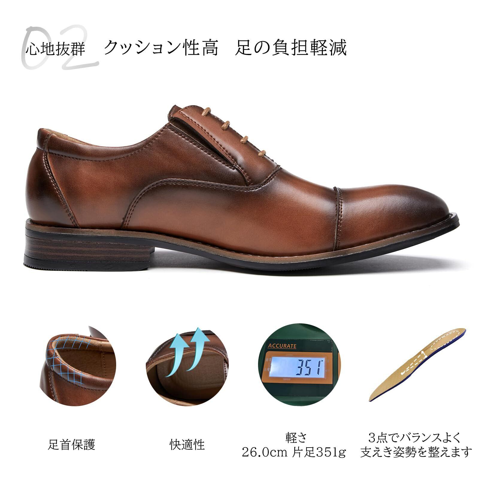 [フォクスセンス] ビジネスシューズ 革靴 メンズ ドレスシューズ ストレートチップ 高级紳士靴 外羽根 軽量 防水 高級レザー フォーマル