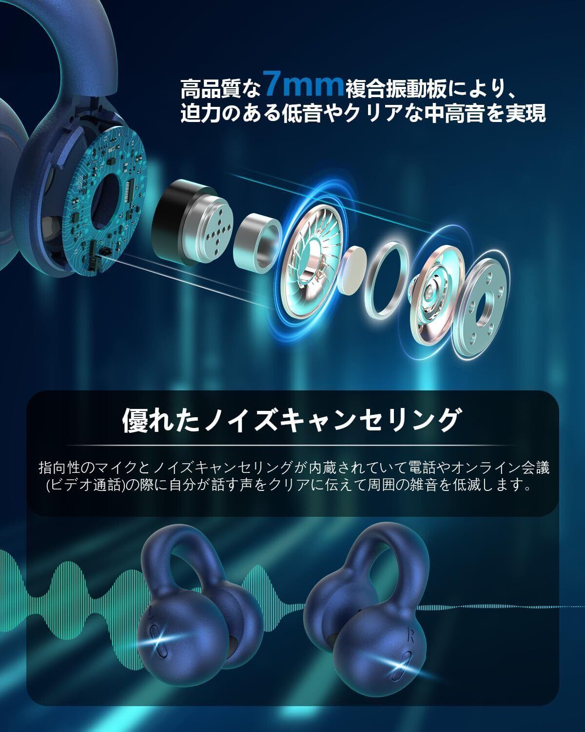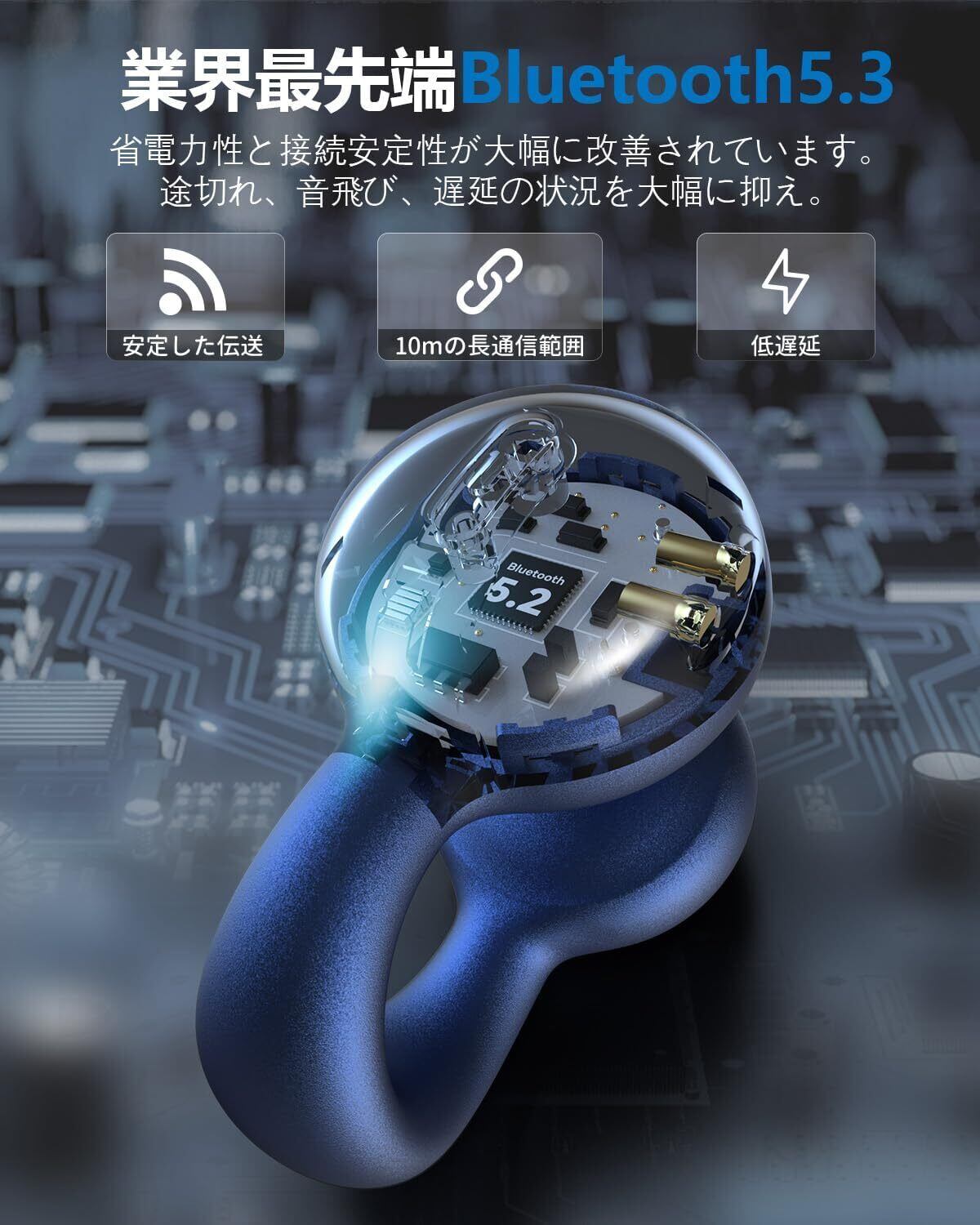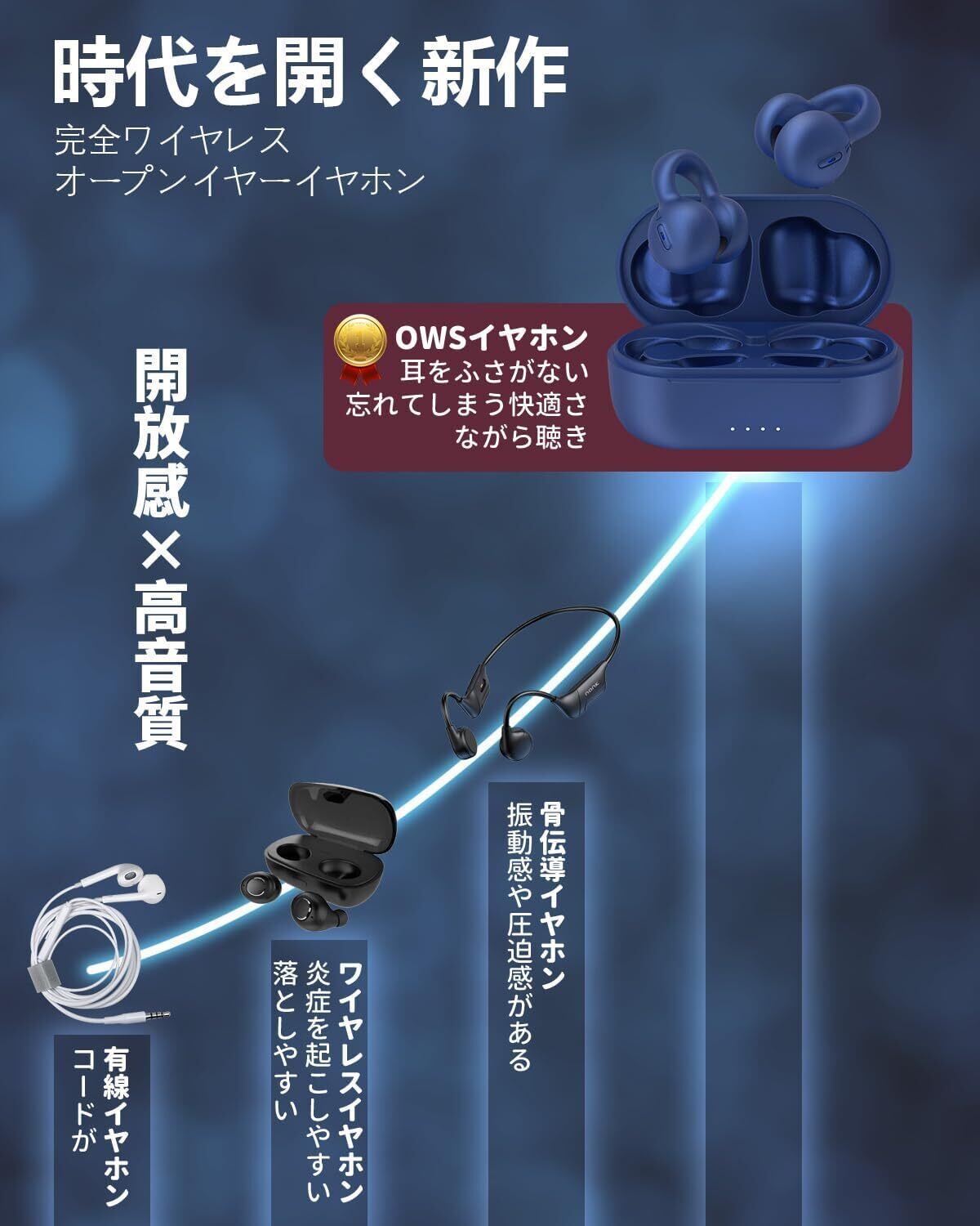 【時代を開く OWSイヤホン】 Bluetoothイヤホン 「イヤーカフ」型イヤホン 完全ワイヤレスイヤホン bluetooth 5.3 マイク付き 骨伝導イヤホンより快適 耳を塞がないイヤホン 耳挟み式 空気伝導イヤホン ブルートゥース イヤホン ENCノイズキャンセリング 日本語音声ガイド/日本語取扱説明書/5g超軽量/自動ペアリング/ハンズフリー通話/プレゼントに最適… (ブルー)