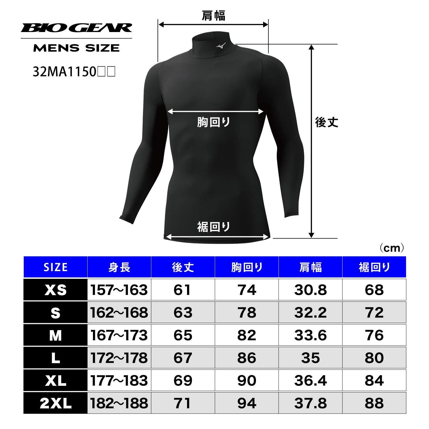 [ミズノ] トレーニングウェア コンプレッションドライアクセルバイオギアシャツ ハイネック長袖 吸汗速乾 ストレッチ 紫外線カット メンズ