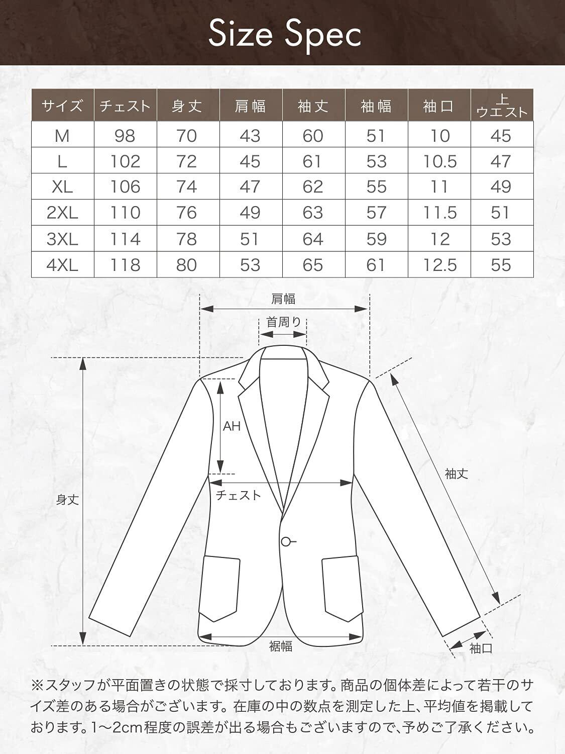 スウェット生地で伸縮性がありますが比較的タイトなデザインとなっておりますので、腕周りが太めの方・胸板が厚めの方はワンサイズ上の商品を購入することをお勧めいたします。