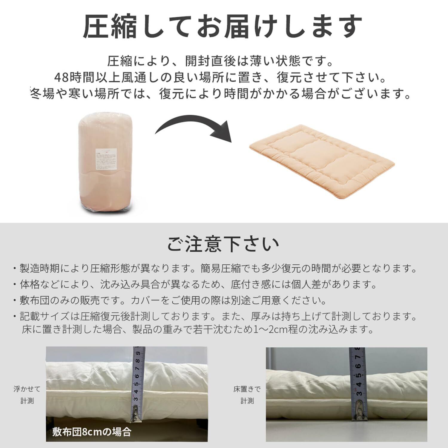 AZRA 敷布団 洗える敷き布団 シングル 三層構造 固綿入り 軽量 三つ折り ふかふか 柔らかい ホコリが出にくい ポリエステル100% 抗菌防臭 防ダニ 薄型 復元しやすい8cmタイプ (圧縮無タイプ 100x210x8cm アイボリー)