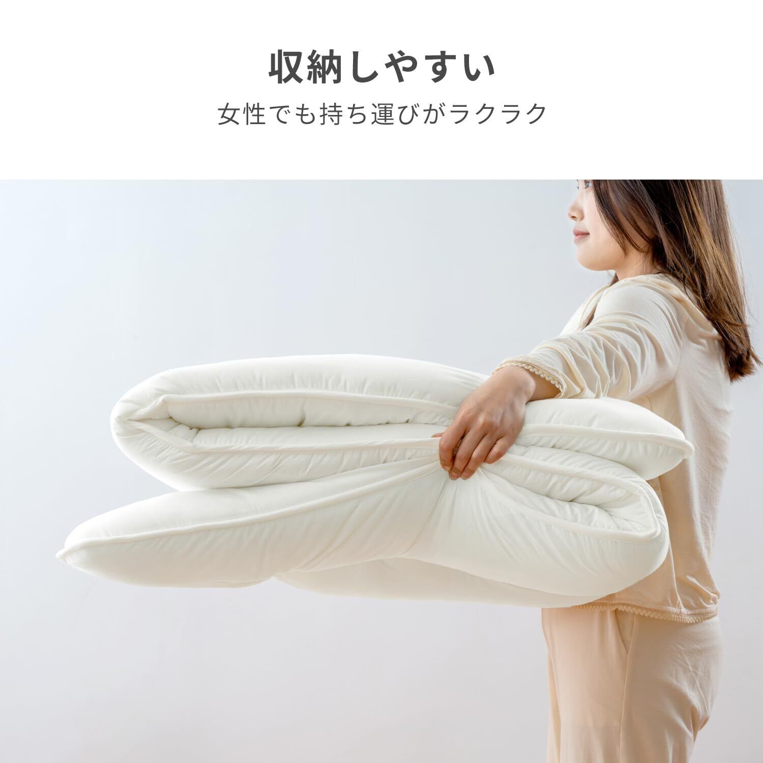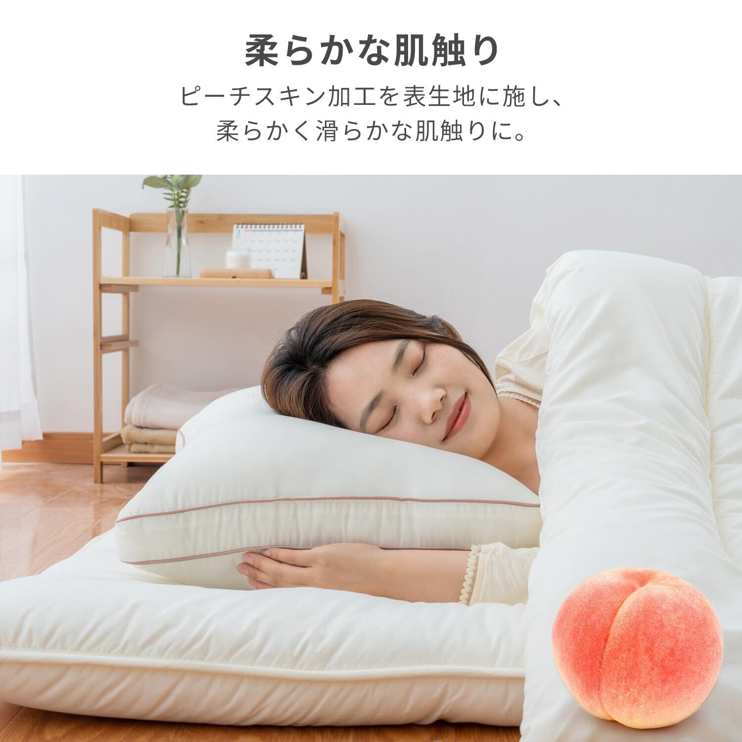 【柔らかな肌触り】ピーチスキン加工を表生地に施し、柔らかく滑らかな肌触りに。ほこりが出にくい、綿切れしにくい、中空ポリエステル綿を使用。毛玉とりにくく、耐久性に優れています。