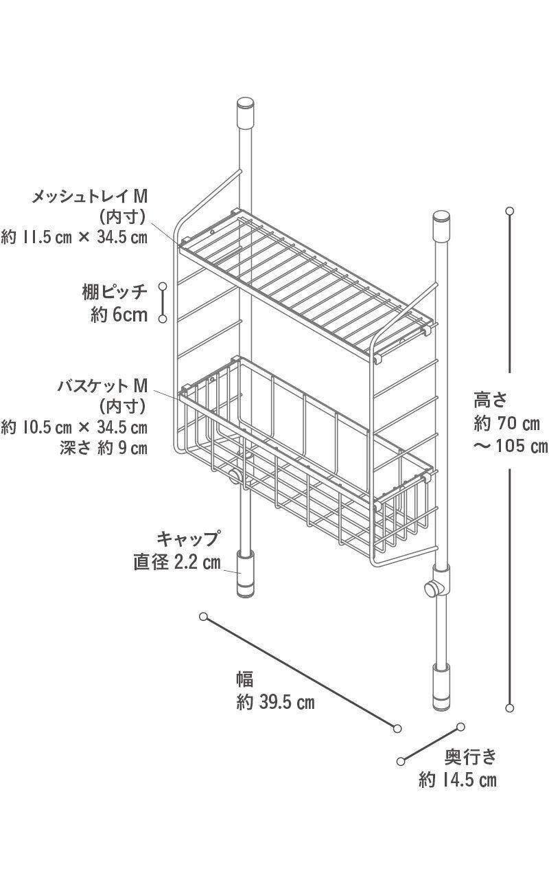 【外寸サイズ】幅39.5×高70~105×奥行14.5cm 【耐荷重】5kg【本体重量】1.6kg