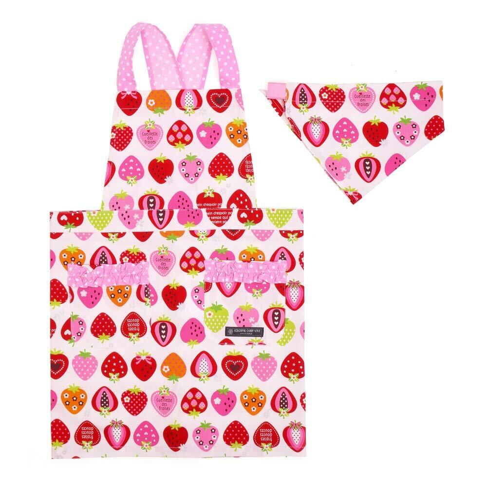 COLORFUL CANDY STYLE 子供用 キッズエプロン 女の子 かぶるだけ バッククロス 三角巾 セット 100-120 スイートストロベリーコレクション(アイボリー) N7903910