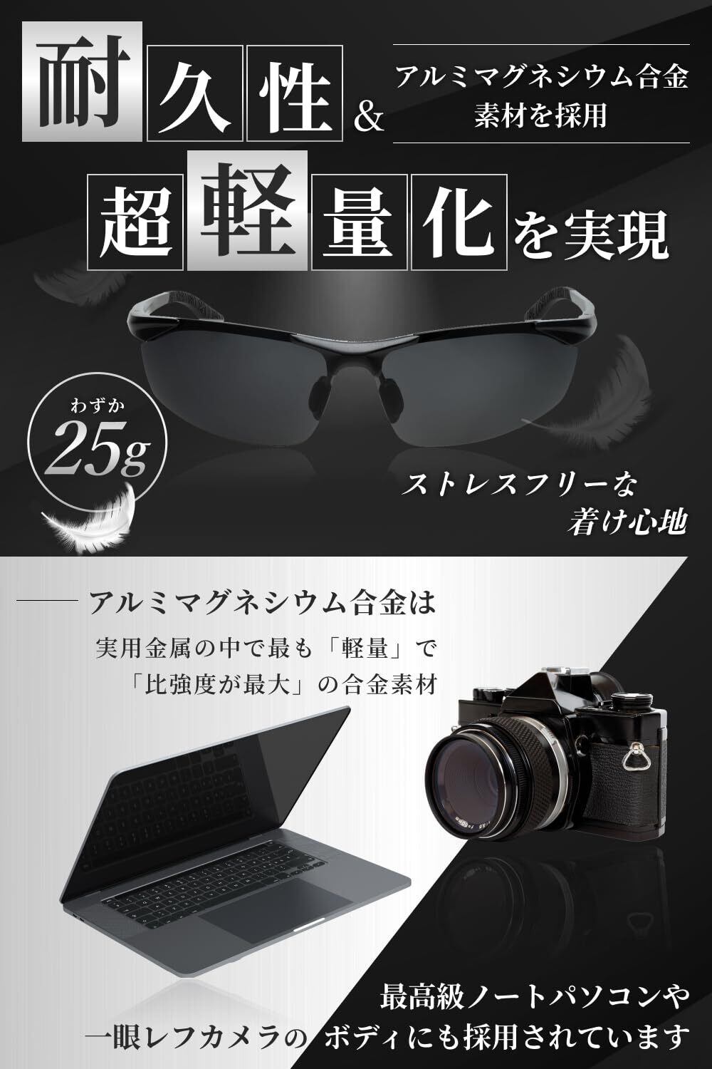 [LUCIAL] 超偏光 × 極薄レンズモデル 運転用 スポーツサングラス UV400カット仕様 釣り ランニング ゴルフ [アルミ合金採用 わずか25gで高耐久性] (クールブラック)