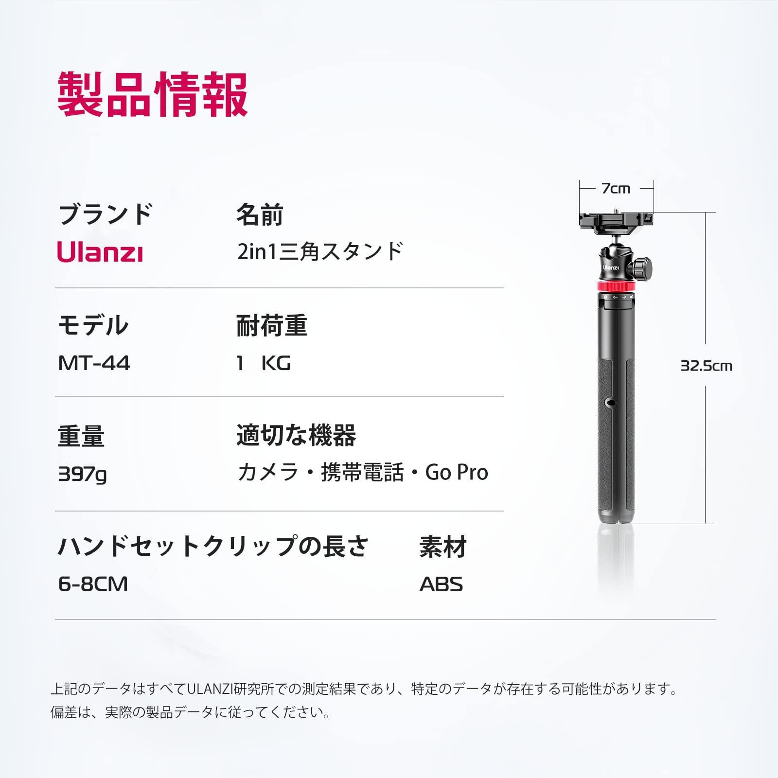 【6段伸縮&自由調節】2023年 最新版 Ulanzi MT-44アップデート、32cm-147cmの6段伸縮、テーブルの上に置いて、ミニ三脚として使えるだけではありません。 また、拡張して床に置き、風景写真を撮ることもできます。 また、三脚を格納して自撮り棒としても使用できます。好みの長さに調整して、多用途に使用することができます。アフターメールボックスにご連絡いただければ、交換品をお渡しします。製品に問題がある場合は、弊社までご連絡ください。】