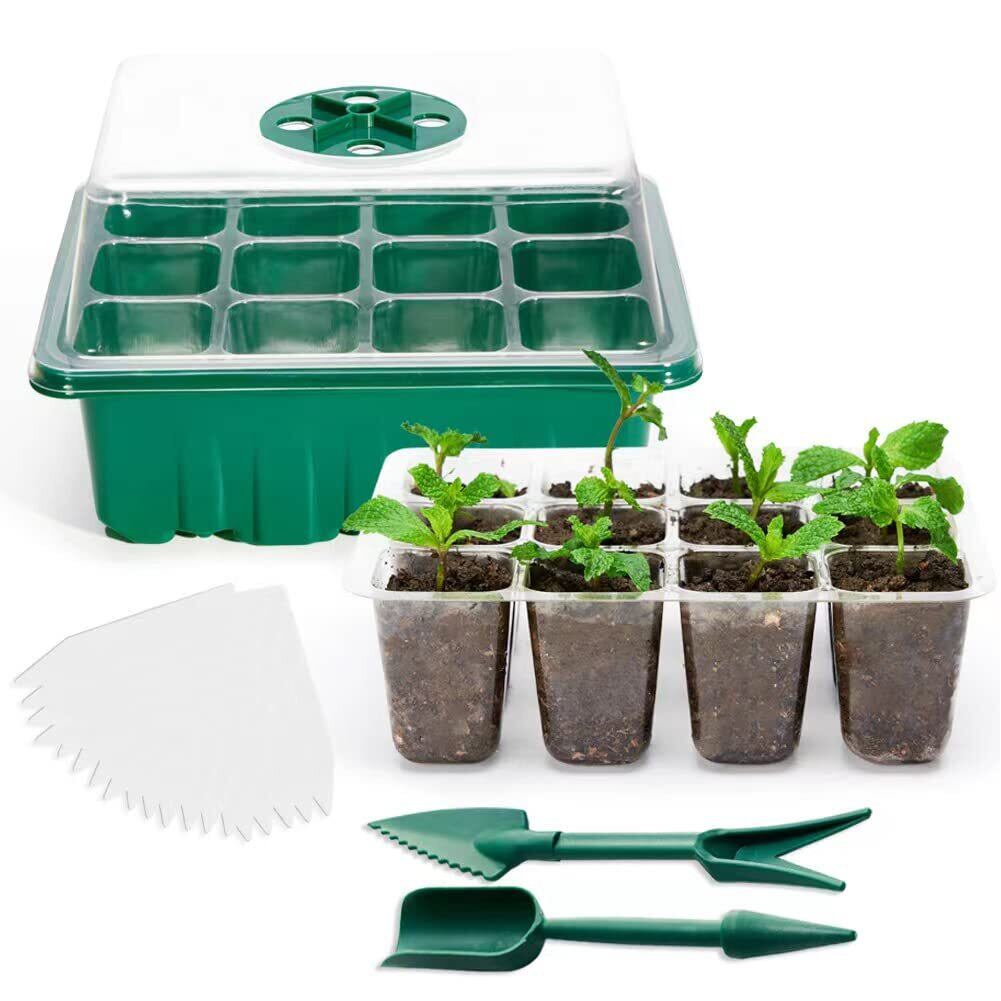 育苗ポット 5個セット 育苗トレイ 育苗箱 12穴 種子トレイ 発芽•育苗セット 種まきハウス 苗箱 種まき器 育苗ボックス 透明カバー 便利性 耐久性 通気性 野菜栽培 多肉植物 家庭菜園 園芸/植栽/庭園 プラグトレイ