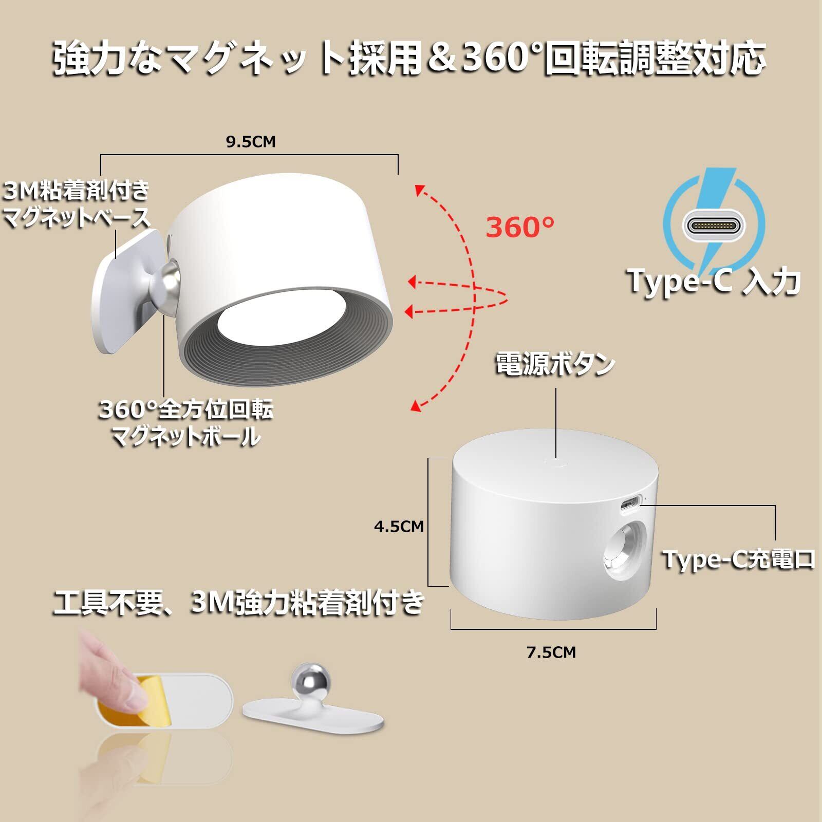 Feallive スポットライト LED ブラケットライト ウォール 3段階調光調色 マグネット式 工事不要 360°照明角度対応 コードレス 2in1タイプ Tpye-C充電式 目に優しい 間接照明 卓上ライト ベッドサイド 高輝度 省エネ メモリー タッチ操作 目に優しい ウォールランプ キッチン 日本語取扱説明書付き
