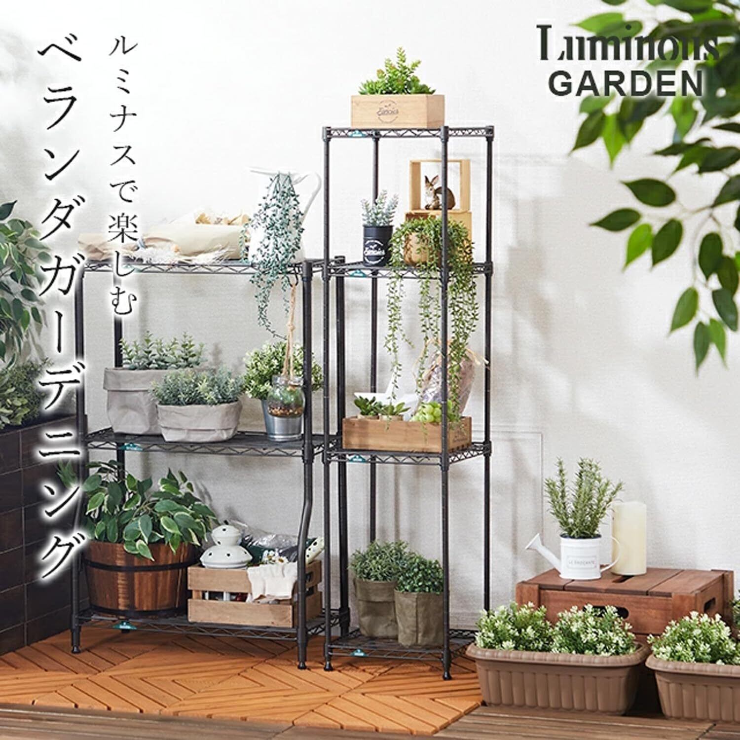 ●ルミナス史上初となる屋外使用が可能なラックで、ガーデニングに最適。抜群の通気性で、風を遮らないワイヤー構造。日当たりのよいベランダやお庭でも、床や地面の反射熱から大切な植物を守る