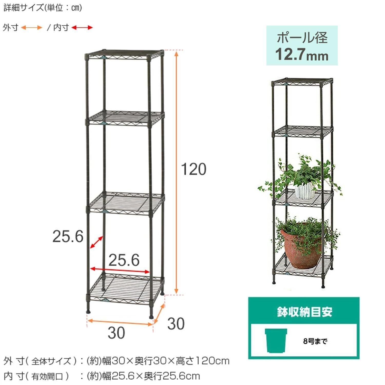 ドウシシャ ルミナス ガーデンラック 幅30 4段 屋外OK サビにくい スリムスチールラック 可変棚 プランターラック フラワースタンド 園芸 観葉植物 全体耐荷重120kg 幅30×奥行30×高さ120cm ポール径12.7mm GR303012-4