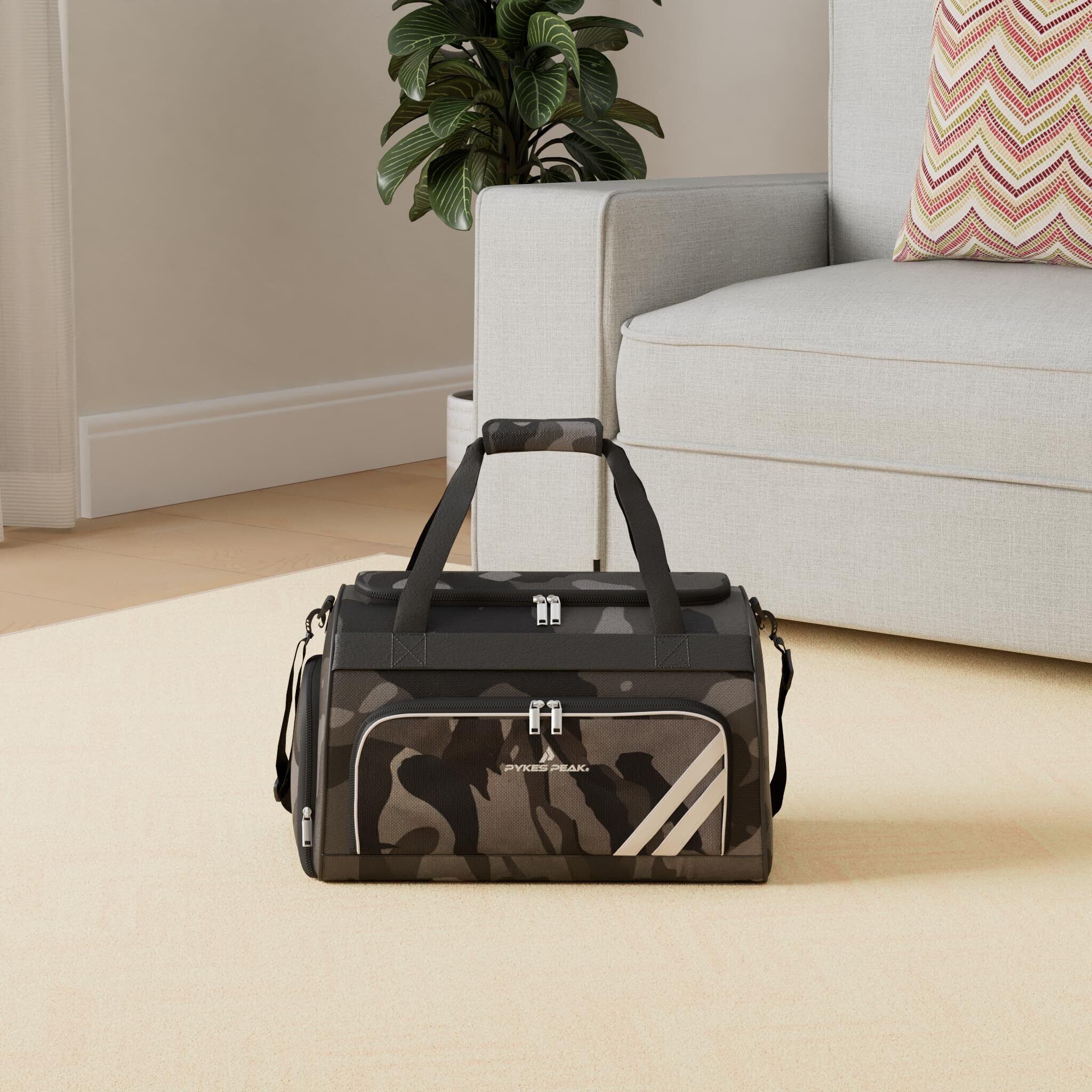 【素材 / カラー / サイズ】素材:ポリエステル/カラー:ブラック、ホワイト、ネイビー、カモフラージュ(1,2) 全5色で豊富に品揃えいたしております。ゴルフウェアやスポーツウェアに合わせたお好みのカラーをお選びください。サイズ:W440×H255×D250mm 約30L収納。PYKES PEAK(パイクスピーク)は国内メーカーで、担当スタッフが丁寧に対応させて頂きますので、初期不良や故障など気軽にご連絡くださいませ。