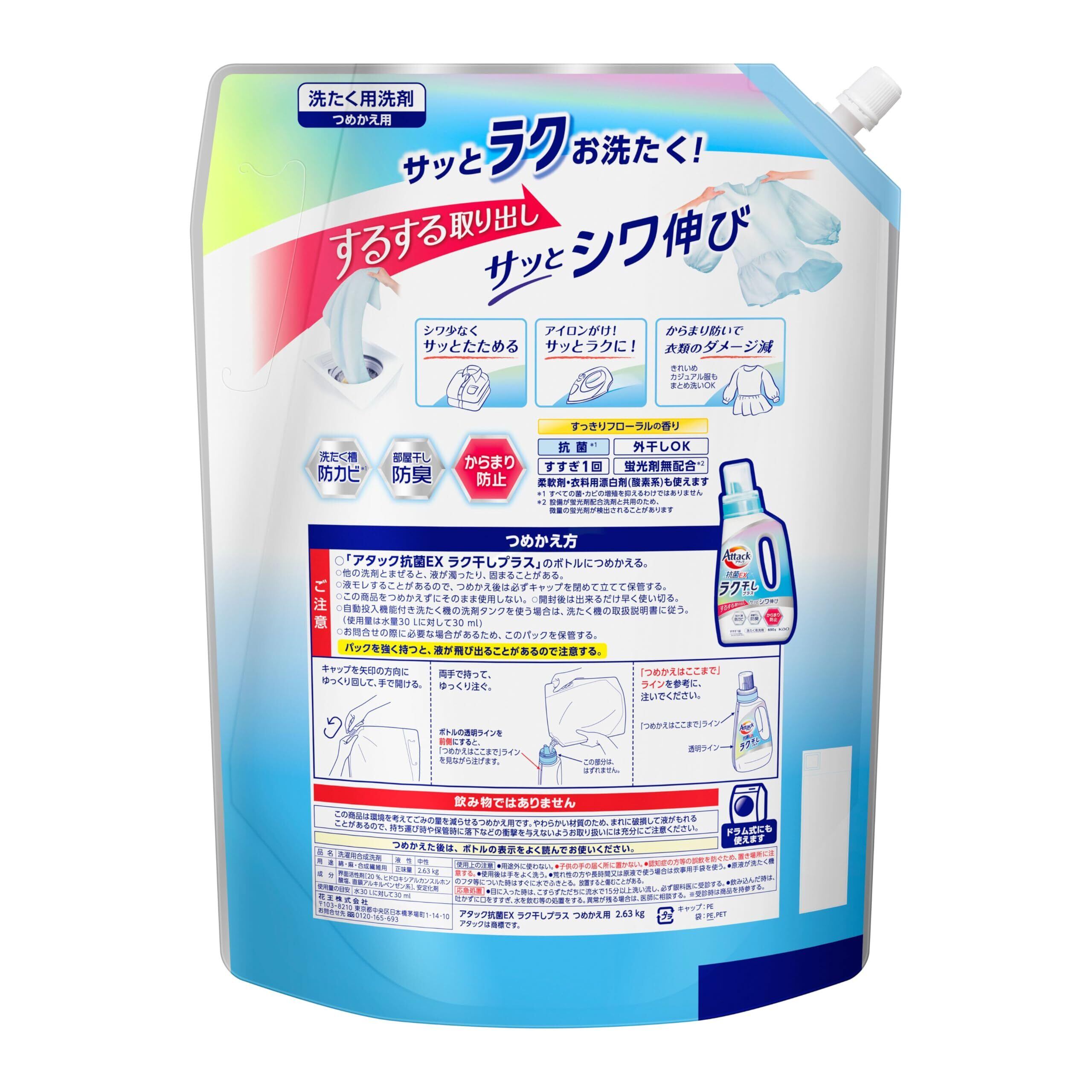 アタック抗菌EX 洗濯洗剤 液体 ラク干しプラス 詰替え用 2630g 大容量