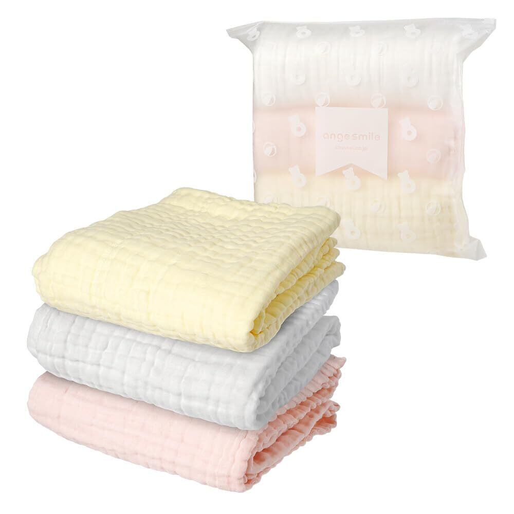アンジュスマイル ベビー ガーゼケット 3枚セット イエロー ピンク ホワイト おくるみ タオル 6重 バスタオル 新生児 6重ガーゼ 綿100 6重ガーゼケット 吸水 大判 コットン 夏 冬