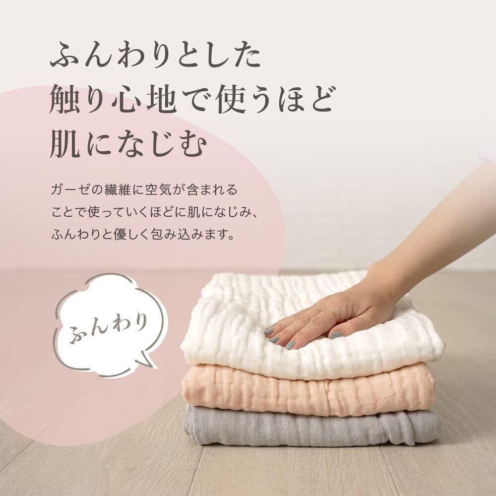 【吸収力抜群でオールシーズン活躍】優れた吸収性により、お風呂上がりの水分をぐんぐん吸い取ります。通気性も抜群ですぐに乾きやすいのも使いやすいポイント。2本の縫い目を入れることで6枚のガーゼが分離しにくく、安心してお洗濯も可能です。