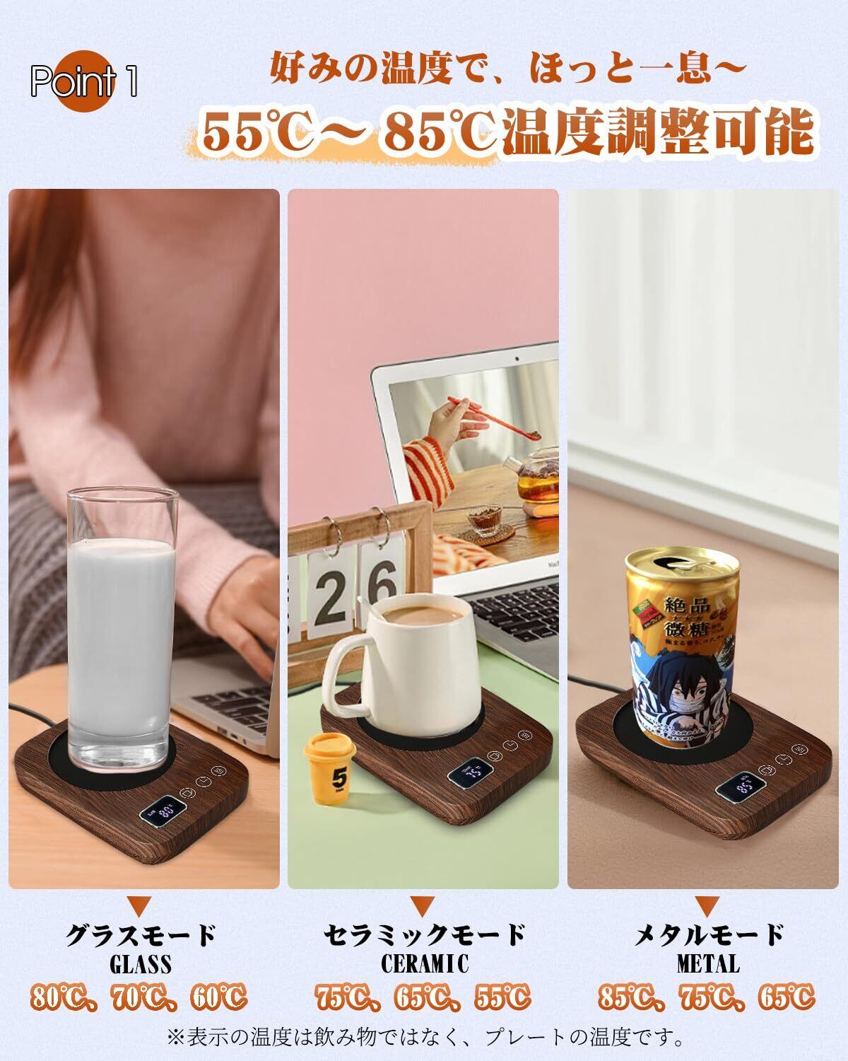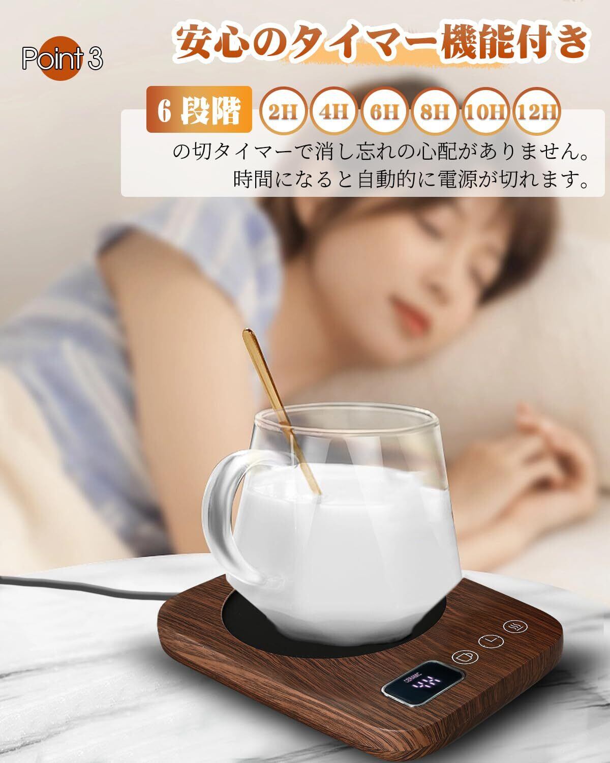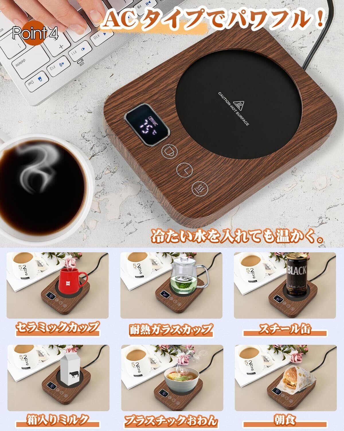 【ずっと温かい】 カップウォーマー コーヒーウォーマー 重力センサー カップヒーター 保温コースター コーヒーカップウォーマー 温度調節 最大85℃ タイマー マグカップ ウォーマー 卓上 デスク コップ 保温器 飲み物 ドリンク プレゼント 木目