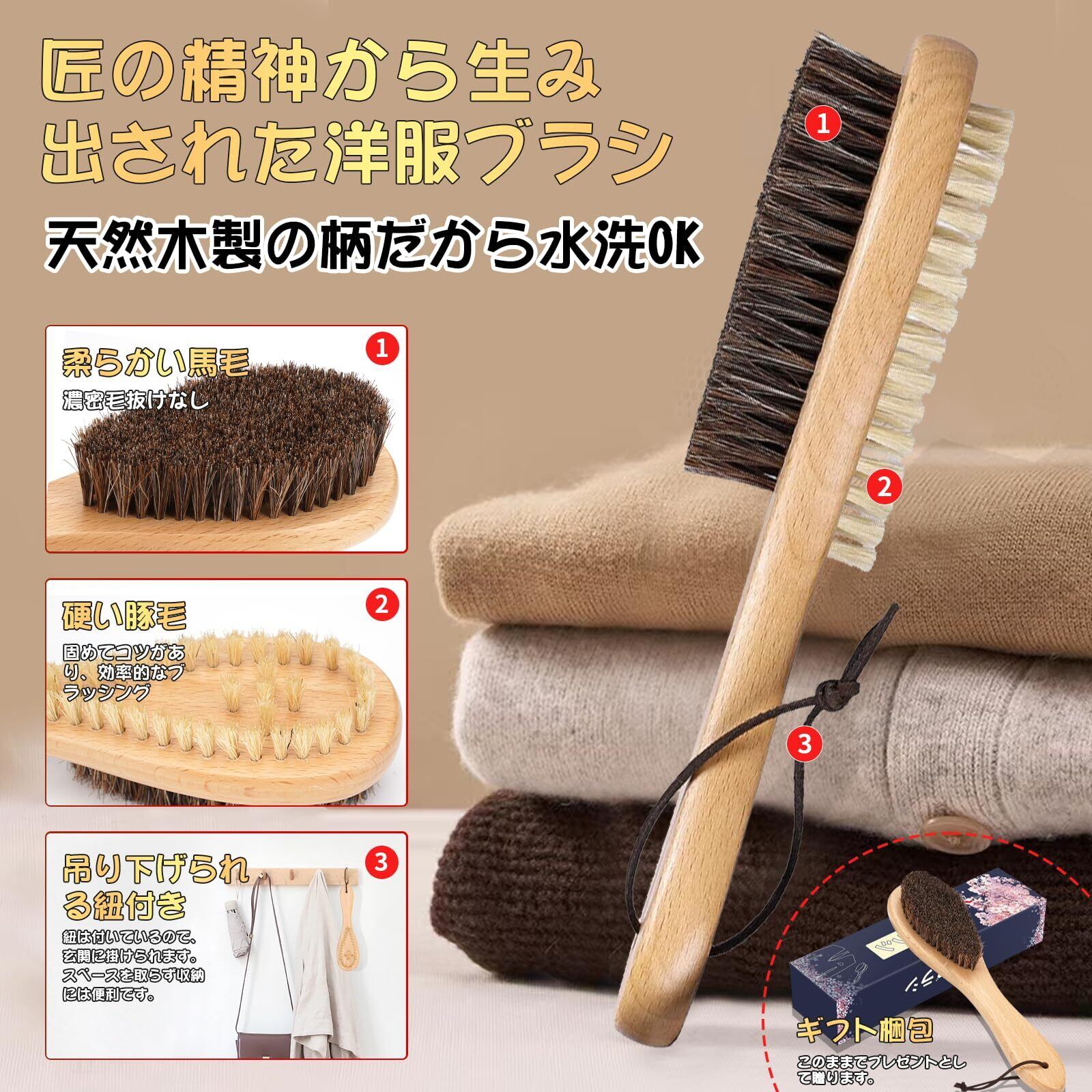 【秋冬家庭必需品】Snana 洋服ブラシ 毛玉取りブラシ けだまとりブラシ スーツ ブラシ 洋服ブラシ 毛玉取り 人気 馬毛 両面タイプ ヒモ付き 毛玉取り 天然馬毛 豚毛100% 天然木 ホコリ取り 花粉対策 静電気除去 毛玉予防 着物お手入れ 靴磨き 掃除ブラシ付き
