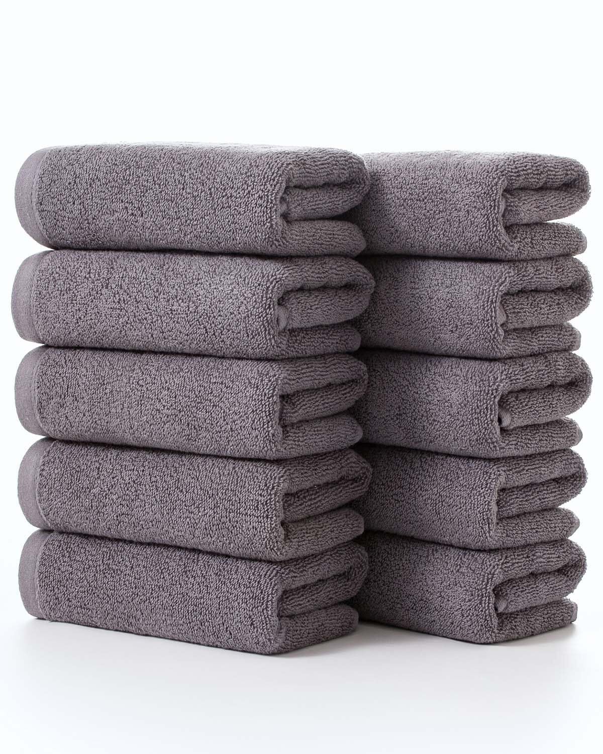 Lumimi フェイスタオル 綿100% ホテル仕様 ふわふわ[約34x74cm 10枚セット グレー]瞬間吸水 速乾 耐久性 業務用 柔らかい お風呂上がり バス用品