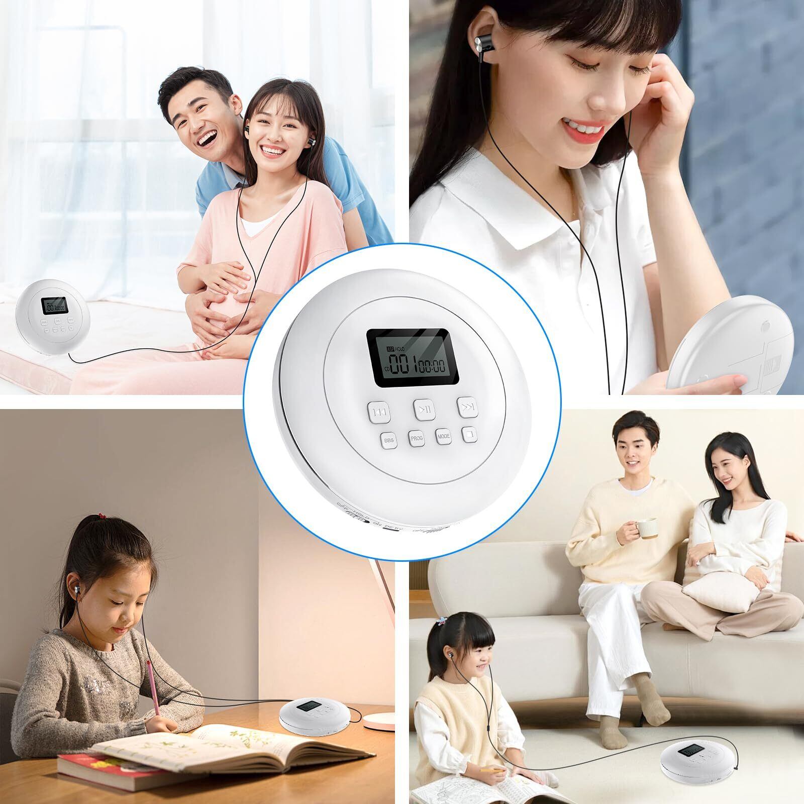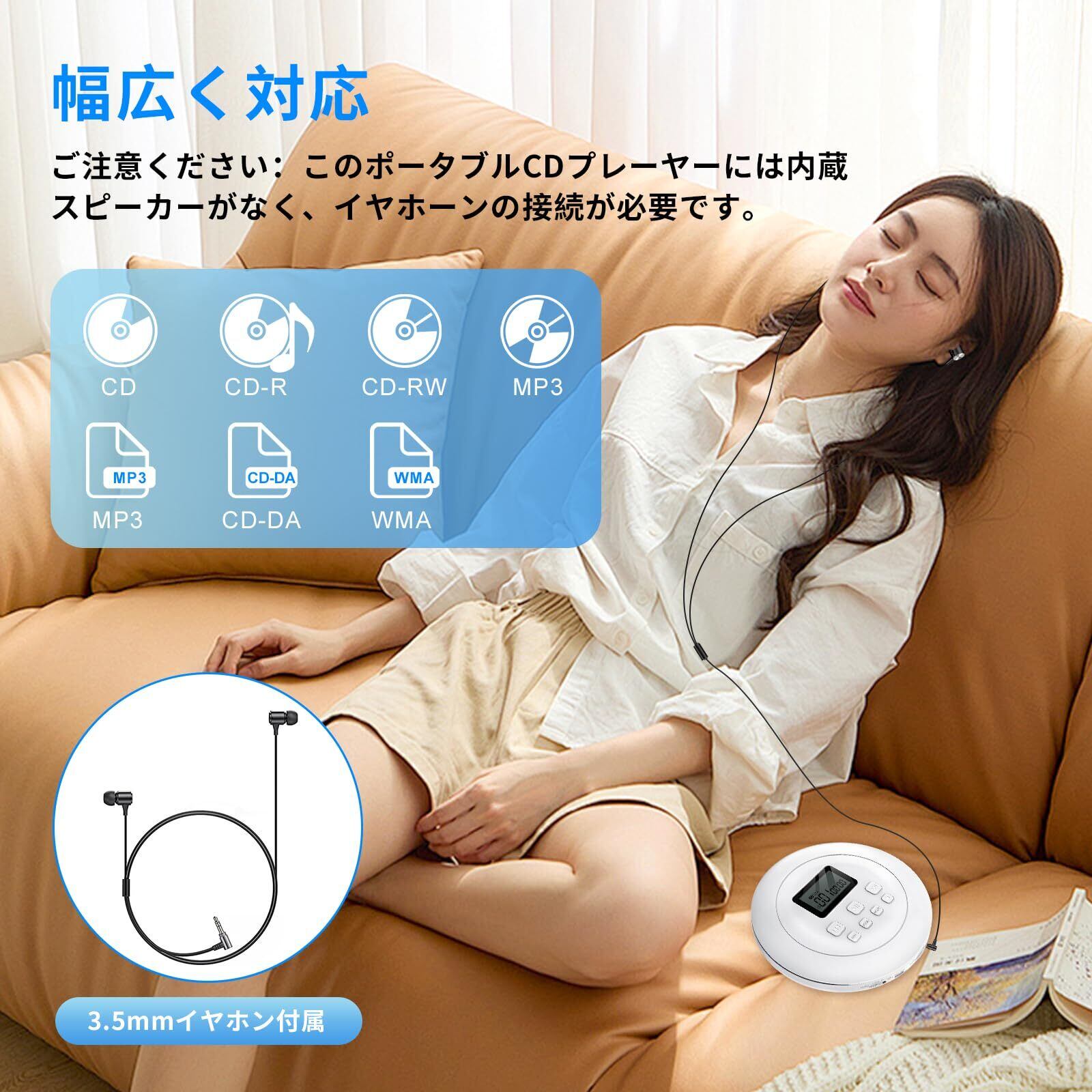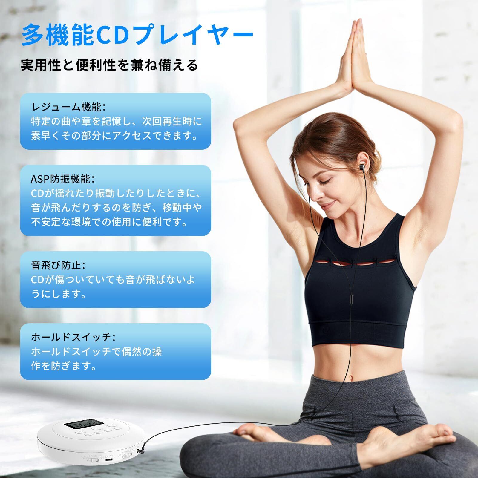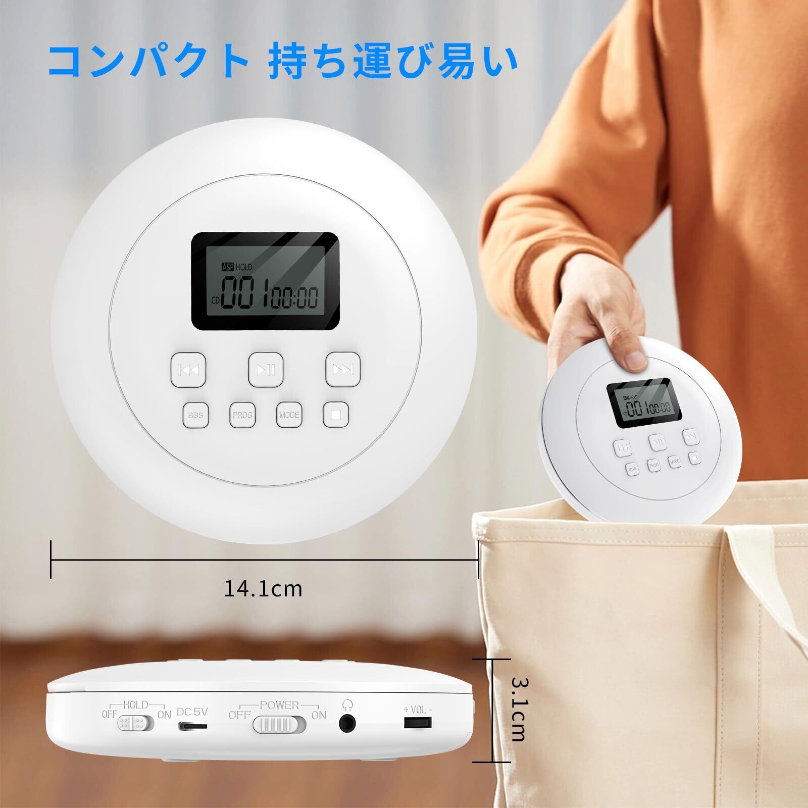 CDプレーヤー ポータブル ポータブルCDプレーヤー 軽量 多機能 USB充電/乾電池 小型 リピート再生 音飛び防止 ASP防振 語学学習 音楽鑑賞 出産前胎児教育 3.5mmイヤホン付き MP3/CDR/CDRW/WMAなど対応 日本語説明書 多機能ポータブルプレーヤー (ホワイト)