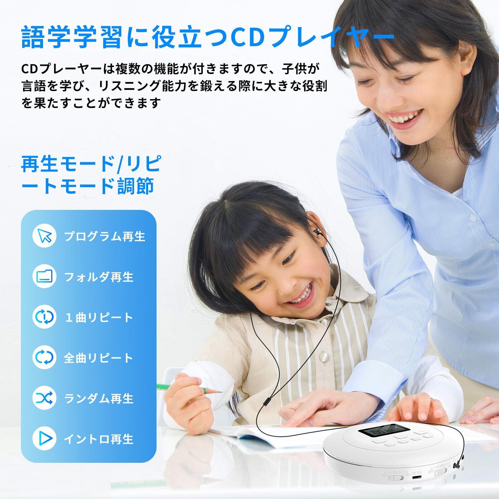 【語学学習に役立つCDプレイヤー】CDプレーヤーは複数の機能が付きますので、子供が言語を学び、リスニング能力を鍛える際に大きな役割を果たすことができます。原版のストーリーブック、映画、音楽、または教育プログラムのCDを再生することにより、最も自然で自然な日本語の発音とイントネーションに触れることができ、特に同じオーディオを何度も何度も聞くことで、彼らは徐々にさまざまな単語やフレーズを理解し、覚えることができます。また、妊娠中の母親は、妊娠期間中にリラックスしたり、ストレスを軽減したりするために音楽を聴くことができます。また、特定の音楽ジャンルや楽曲は、胎児の発育や感情にも影響を与えることが知られています。(ご注意ください:このポータブルCDプレーヤーには内蔵スピーカーがなく、イヤホーンの接続が必要です。)