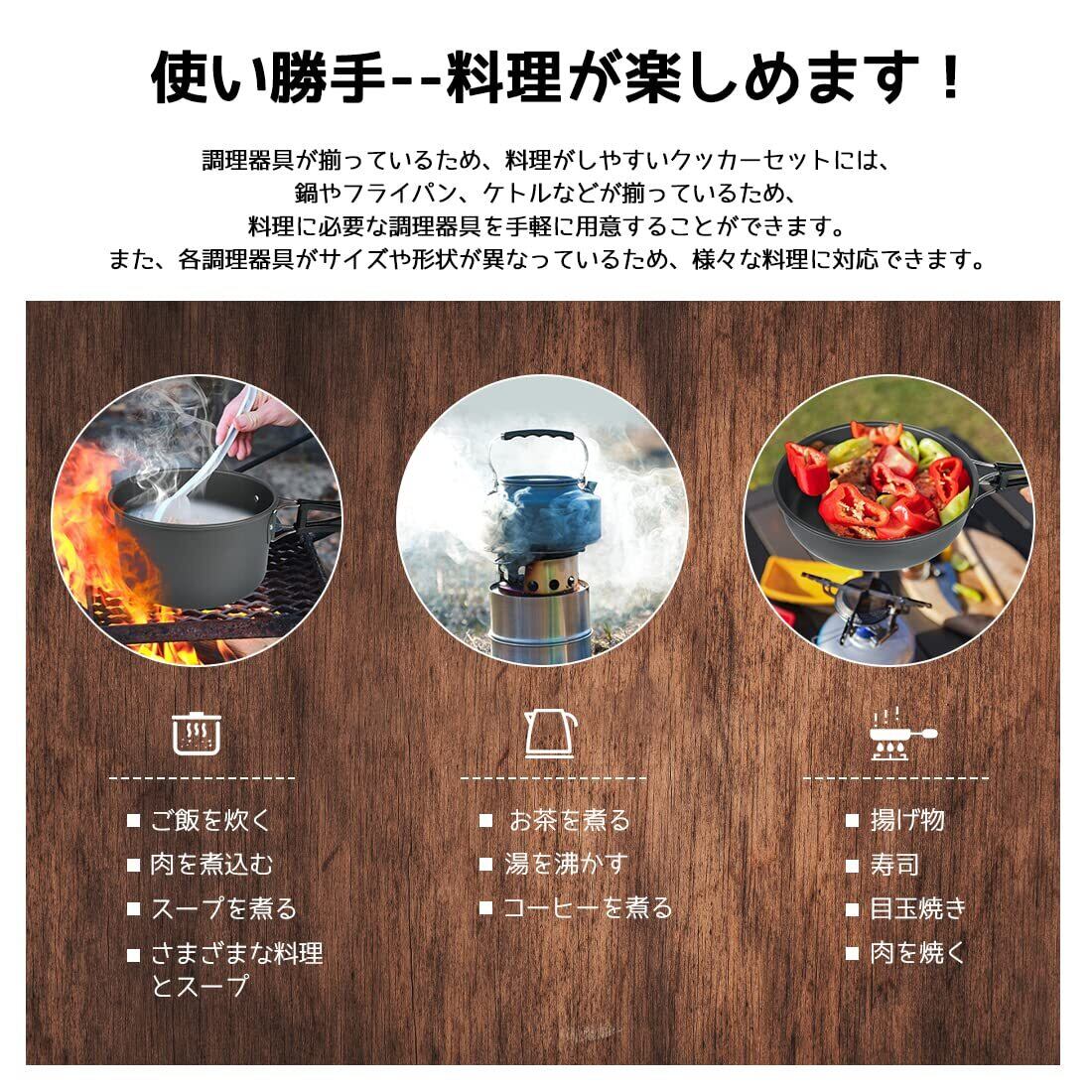 SOHAPI アルミクッカーセット キャンプ用品 鍋 アウトドアケトル クッカー くっかーセット アウトドア 調理器具 フライパン キャンピング鍋 収納袋付き 2–3人に適応 折畳み式 軽量 コンパクト(クッカーセット)