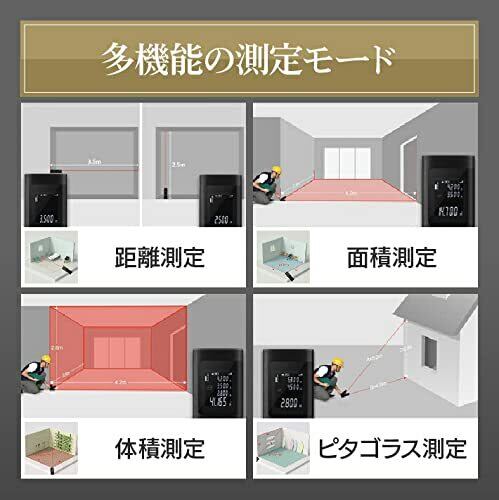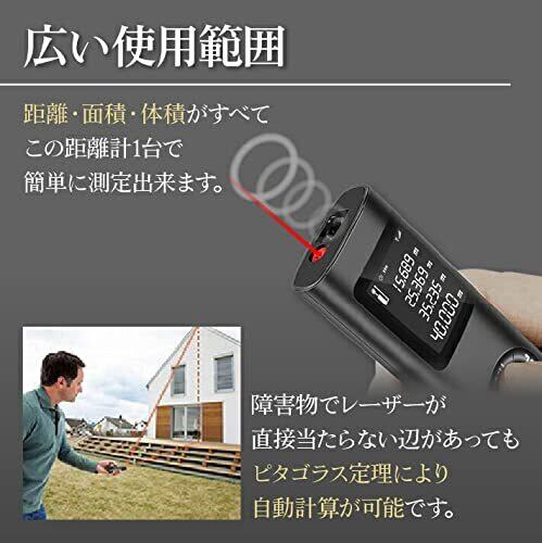 【使用範囲広い】距離や面積、体積がすべて距離計1台で簡単に測定!また、障害物で光が直接当たらない辺があっても、ピタゴラス定理により自動計算が可能です。家庭内DIY 使用だけではなく、建築工事作業現場、不動産屋用、引っ越し用、行政書士の土地・建物調査の測定作業にも最適で活用しています。