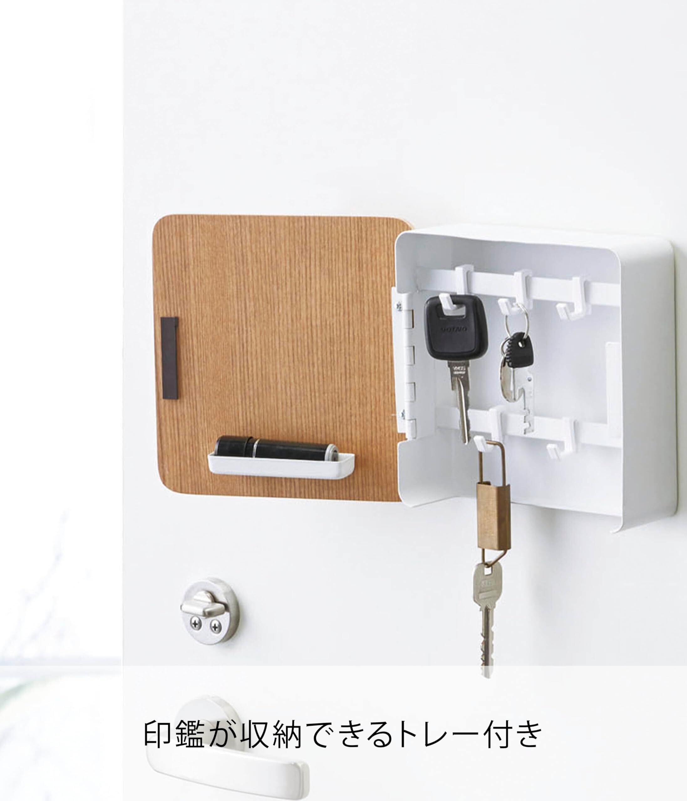 インテリアに合う木目の扉付きで鍵が隠せる。