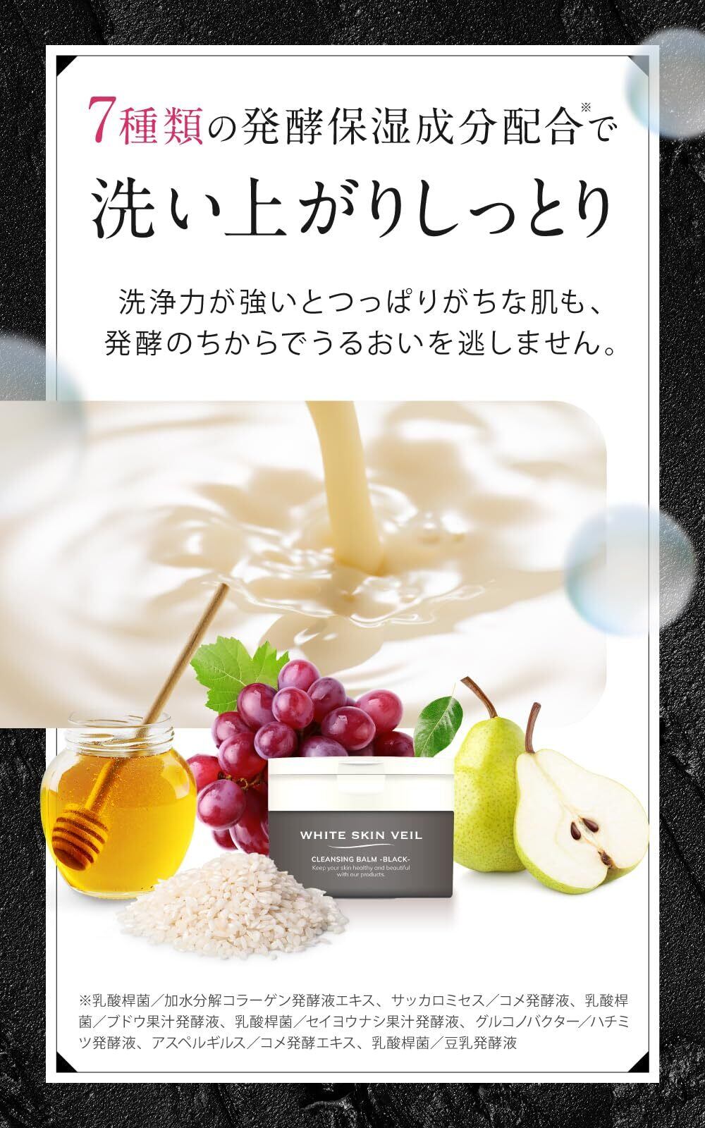 ✨【毛穴専門】毛穴ケアブランドのホワイトスキンベールが本気で作った毛穴 クレンジングバーム 黒。炭を配合したことで酵素の力もパワーアップ!w洗顔不要のクレンジングだから毎日のケアが楽に