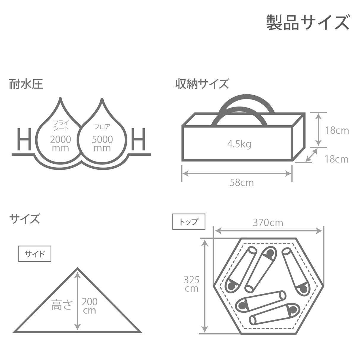 耐水圧:アウターテント:2000mm、フロア:5000mm