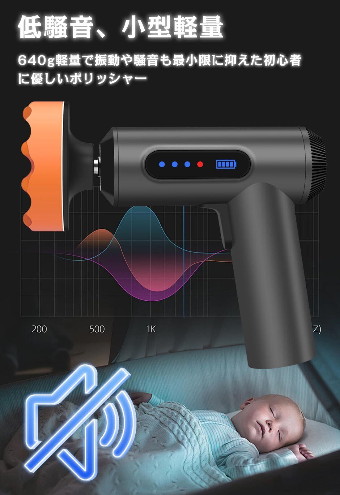 【コードレス軽量・充電式】これは、充電式のポリシャー、電源コードを接続することなく使用、コンパクトで使いやすい、何といっても軽い(640g)も使える便利な電動ポリッシャーです。長時間の作業をしてもあまり疲れもこともなく、で小型なので、初心者に適しています,腕は疲れにくく、女性やお年寄りにも向いています