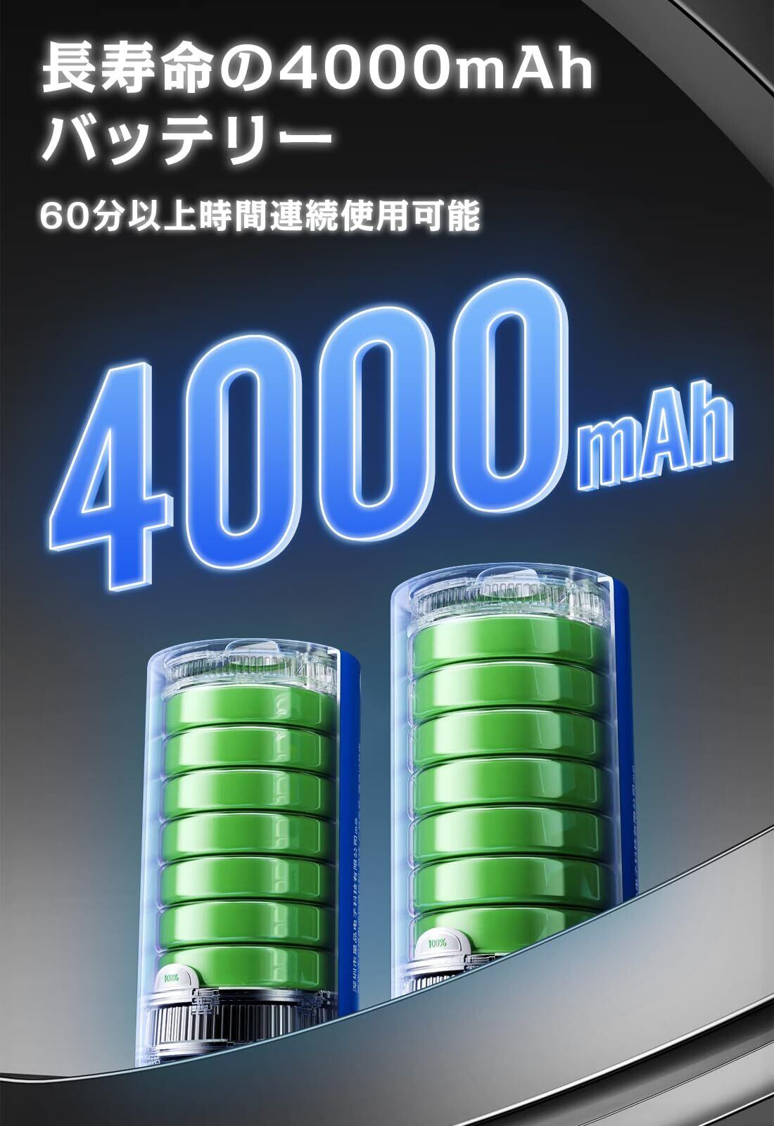 【2000mAh*2バッテリーとLEDディスプレイ】コードレスポリッシャーは大容量2000mAh*2のバッテリ付きおUSB充電ケーブル1本、より長く使え、電池寿命も長く、充電も早い。 満充電時の使用時間は約180分です。満充電時の使用時間は約40分です。製品の電源表示[緑]がポリッシャーの充電中を示している場合。