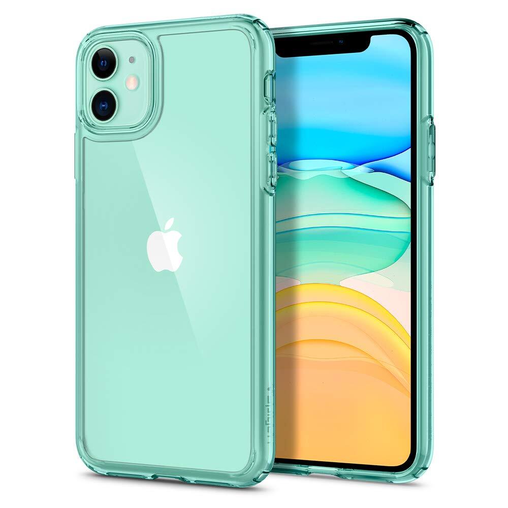 Spigen iPhone11ケース クリア 耐衝撃 米軍MIL規格取得 カメラ保護 衝撃吸収 全面 PC TPU 二層構造 Qi充電 ワイヤレス充電 アイフォン11ケース シュピゲン ウルトラ・ハイブリッド ACS00406 (グリーン・クリスタル)