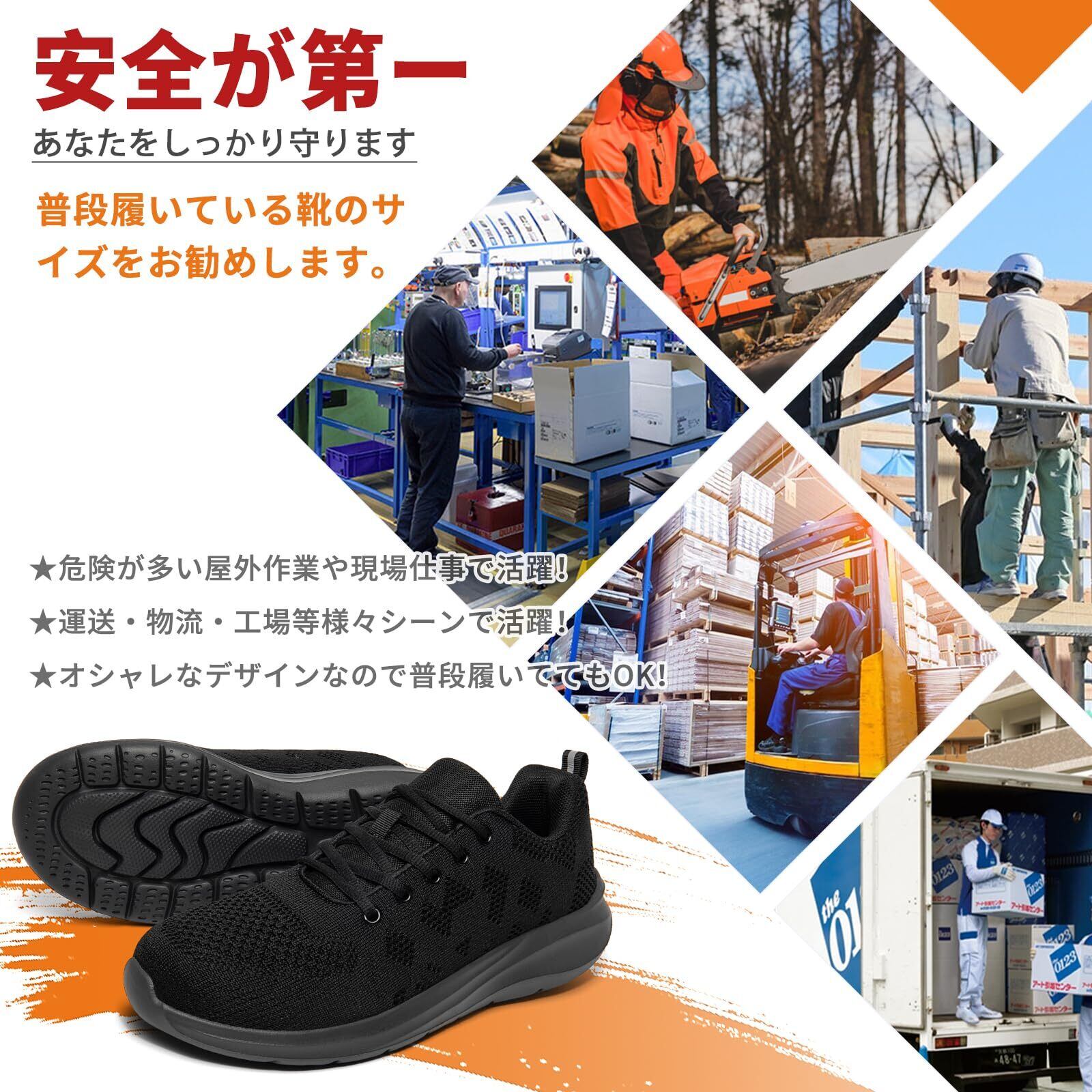 [SOARHOPE] 安全靴 作業靴 メンズ レディース 樹脂先芯 耐滑 釘踏み抜き防止 おしゃれ 通気性 あんぜん靴 つま先保護 工事現場 ワークシューズ セーフティーシューズ 耐摩耗