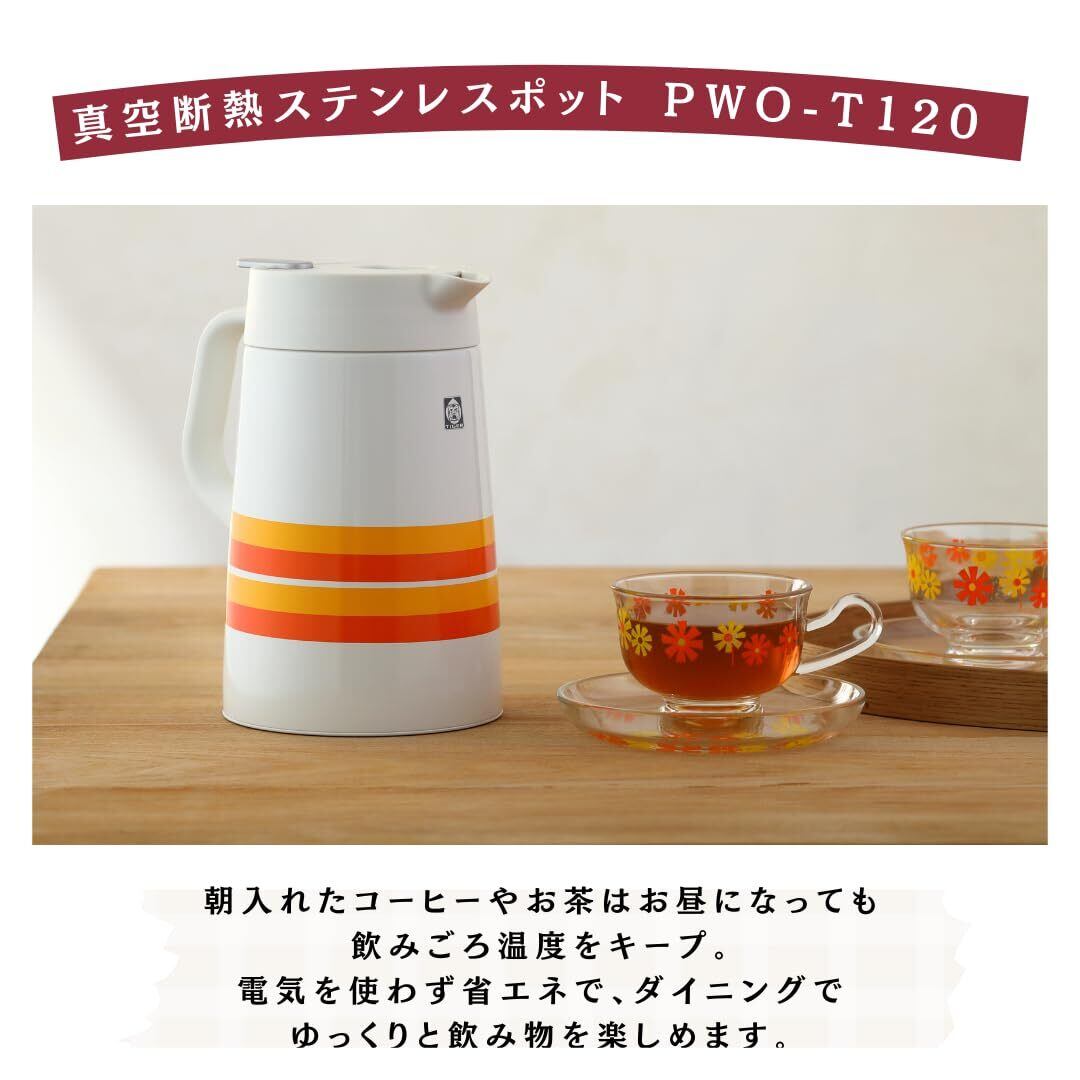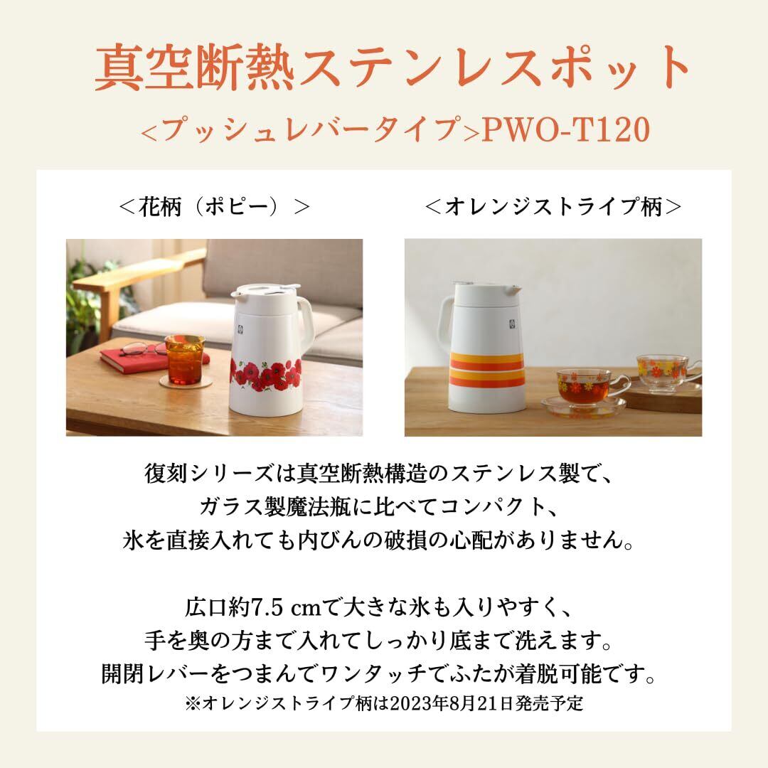 タイガー魔法瓶(TIGER) 真空断熱ステンレスポット WEB限定 100周年記念モデル 復刻 レトロ柄 オレンジストライプ PWO-T120WO
