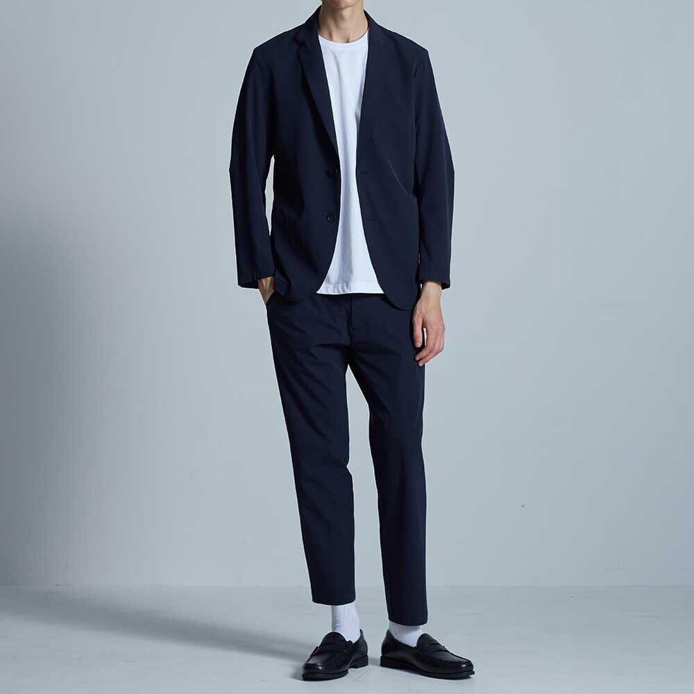 【BODY WILD ジャケット】ナイロン素材のテーラードジャケットは軽量で速乾性があり通気性が高いため快適な着心地。しかも、すべてお家で水洗い可能なので、さっぱり着られてお手入れラクチン。