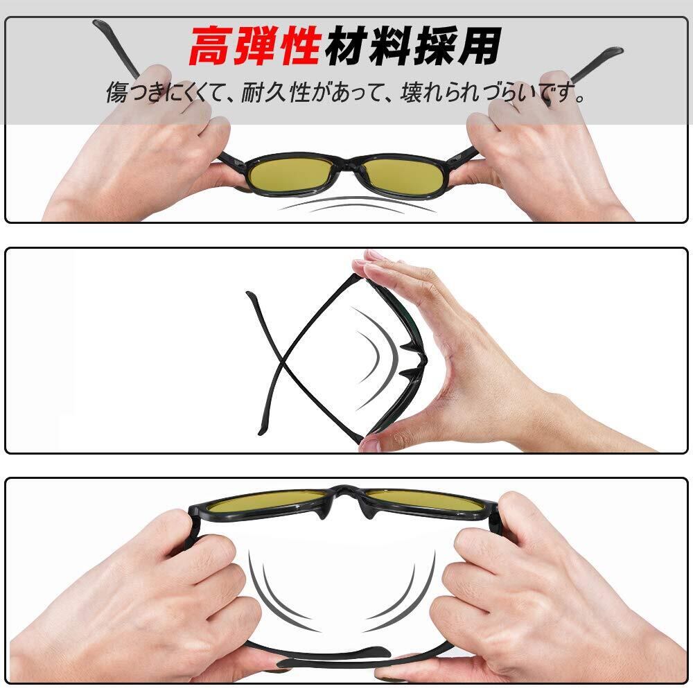 【7枚4層コーティング技術加工した偏光レンズ】偏光レンズは偏光膜という特殊フィルムが挟み込まれている特殊レンズです。表面に特殊な七つコーティング技術加工しています、1枚目の層は、偏光層です。2、3枚目の層は、耐久性を増すために、層を結合しています。4、5枚目の層は、紫外線を吸収するUV保護層です。6、7枚目の層は、飛散防止層です。UVA・UVB・UVC&目に有害なブルーライトを100%カットします。眩しさや乱反射光を効果的にカットし、より快適な視界を確保することができます。
