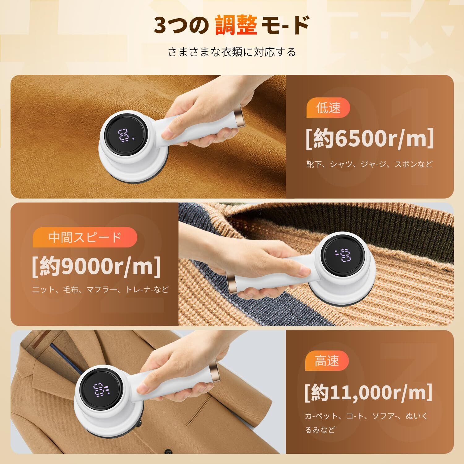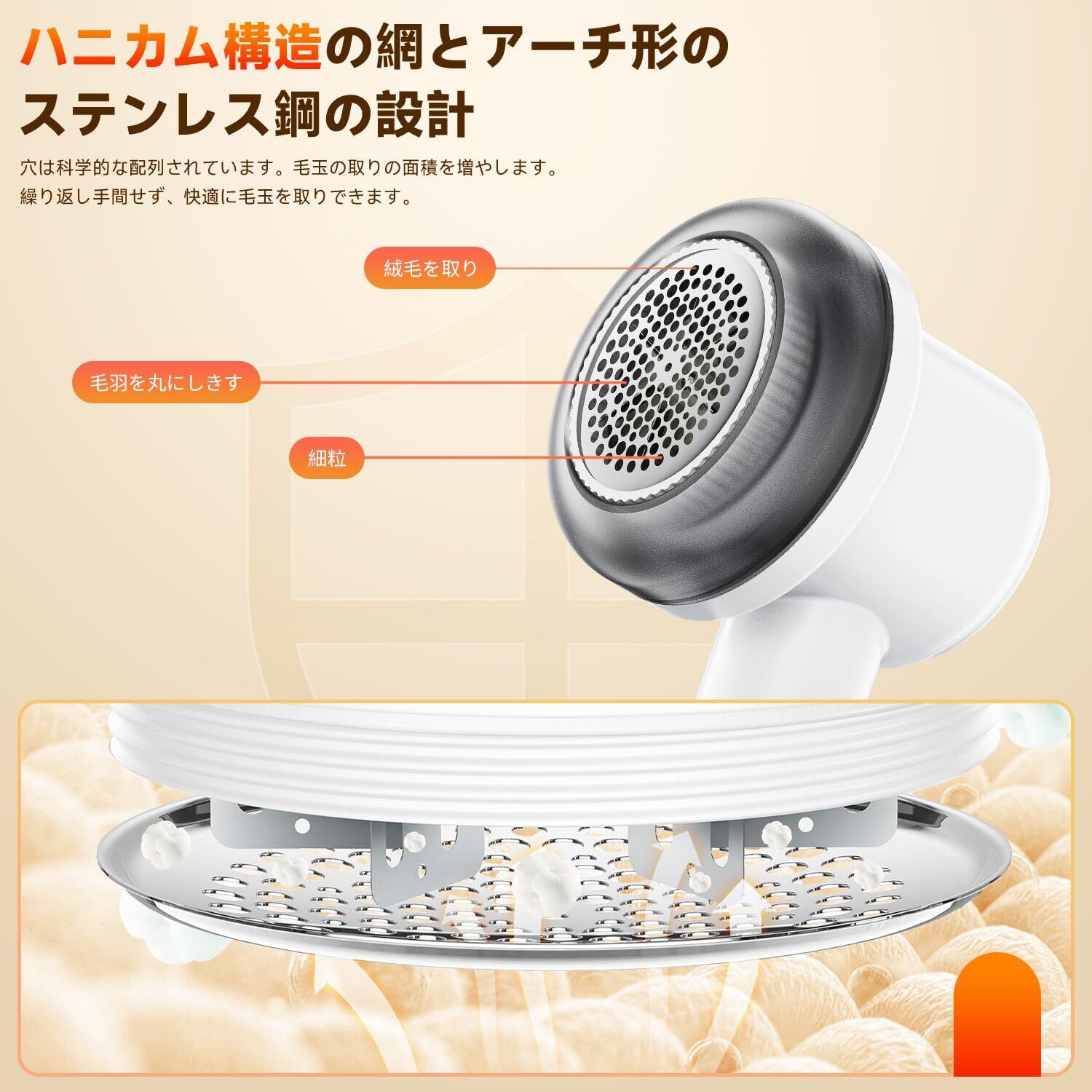 【高速回転と高強度外刃】このけだま取り器は高速回転モーターを搭載しており、最高回転数は11000rpmです。強力な6枚のステンレス刃が装備されており、切断性能は卓越しています。毛玉だけでなく、衣類の繊維くずも取り除くことができます。お洋服を新しいように蘇らせます!日常生活に欠かせない毛玉取り器です。