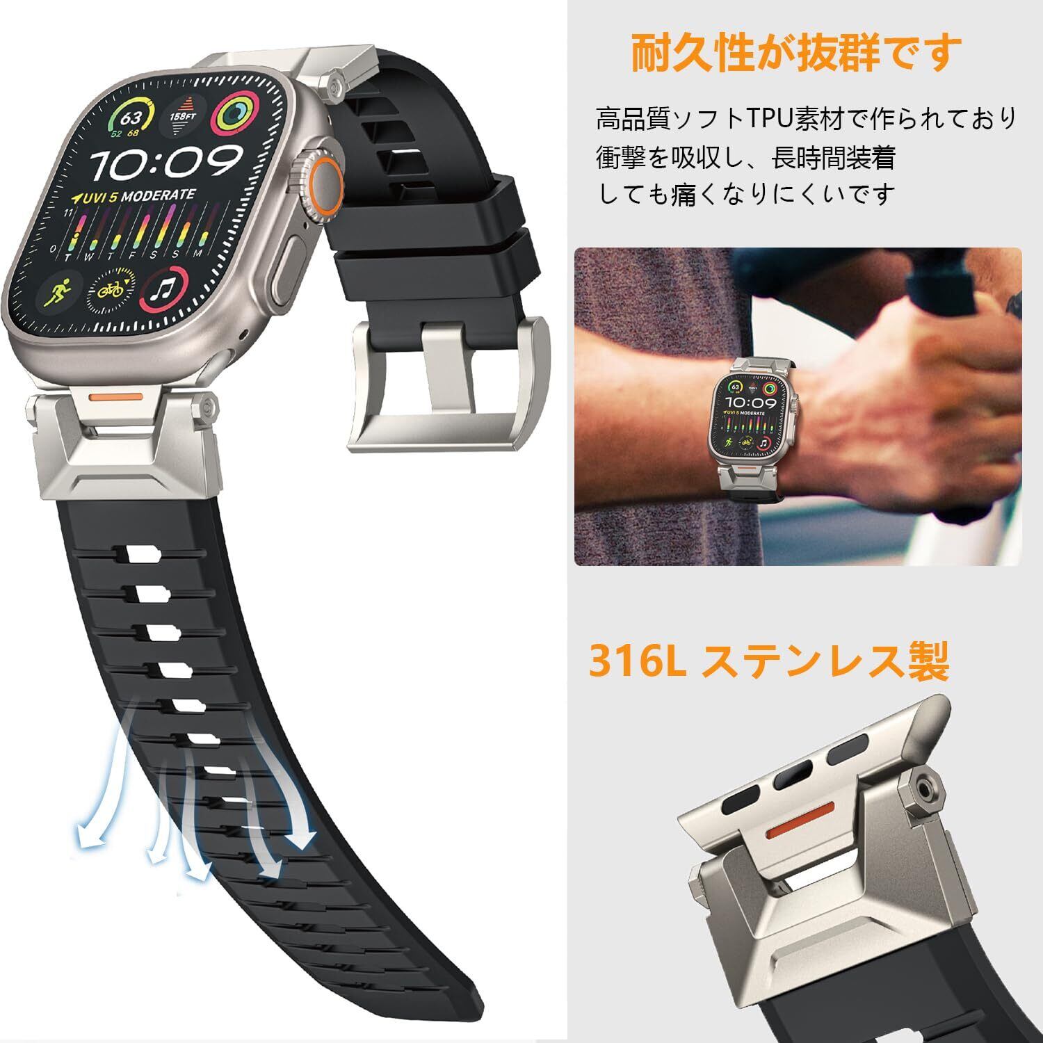 新登場 アップルウォッチ バンド ultra 49mm/46mm/45mm/44mm/42mm Series 10/9/8/7/SE2/SE/6/5/4/3/2/1 Apple Watch バンド スポーツ 防水 TPU 柔らかい アップルウォッチ ベルト メンズ スポーツ (ブラック-ブラック, 49mm/46mm/45mm/44mm/42mm)