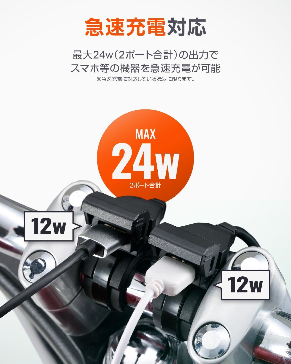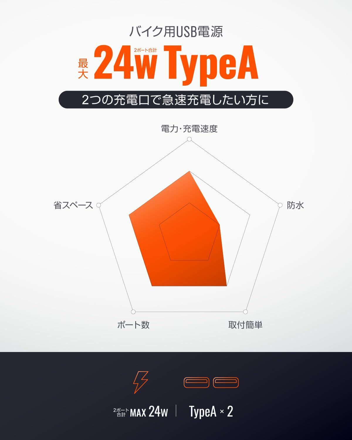 USB-A 2ポート合計MAX 24W出力。