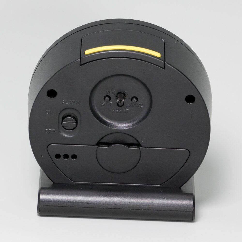 ●アラームONで秒針が止まる機能や、針式のアラームセットなど、便利な機能を搭載