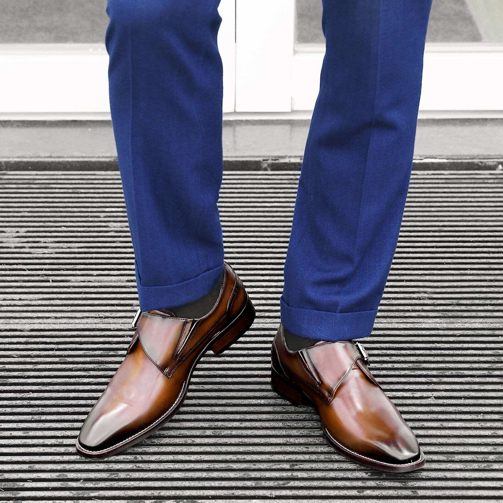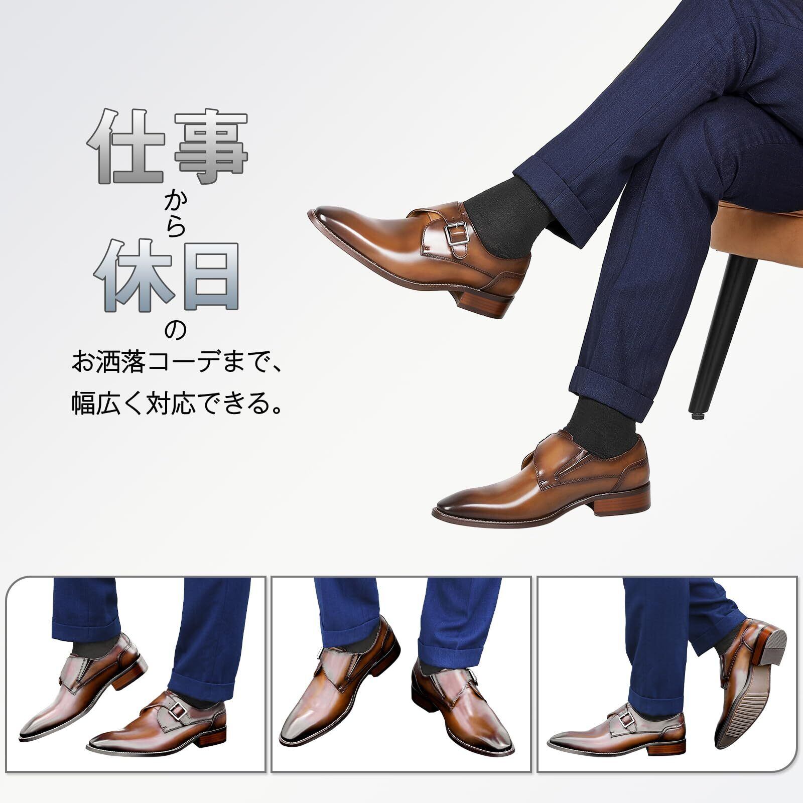 [フォクスセンス] ビジネスシューズ 革靴 メンズ 本革 ドレスシューズ プレーントゥ 紳士靴 モンクストラップ
