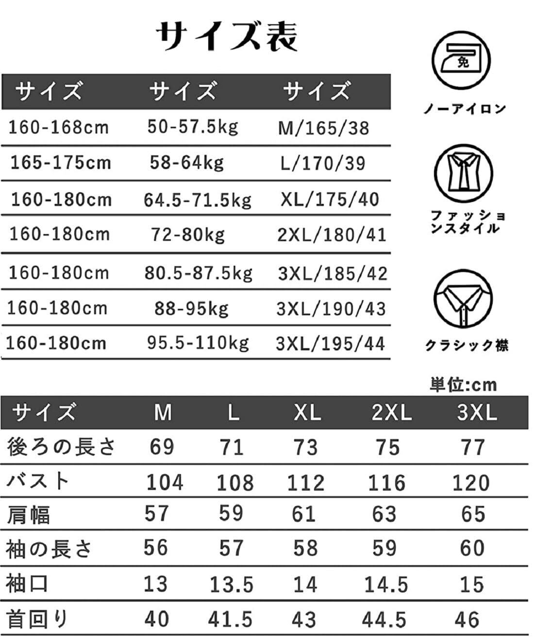 【サイズ】【M=日本S】 適応胸囲の目安:78-82cm 身長の目安:155-163cm 体重:40-47kg;【L=日本M】適応胸囲の目安:82-88cm 身長の目安:163-168cm 体重:47-55kg;【XL=日本L】適応胸囲の目安:88-92cm 身長の目安:168-173cm 体重:55-60kg;【2XL=日本XL】適応胸囲の目安:92-96cm 身長の目安:170-175cm 体重:60-70kg;【3XL=日本2XL】適応胸囲の目安:96-100cm 身長の目安:173-180cm 体重:70-80kg。※表記寸法と実寸値の多少(1-3cm)の誤差はご容赦ください。商品画像と実際の色は、撮影の状況・モニターの表示等により若干異なる場合がございます。